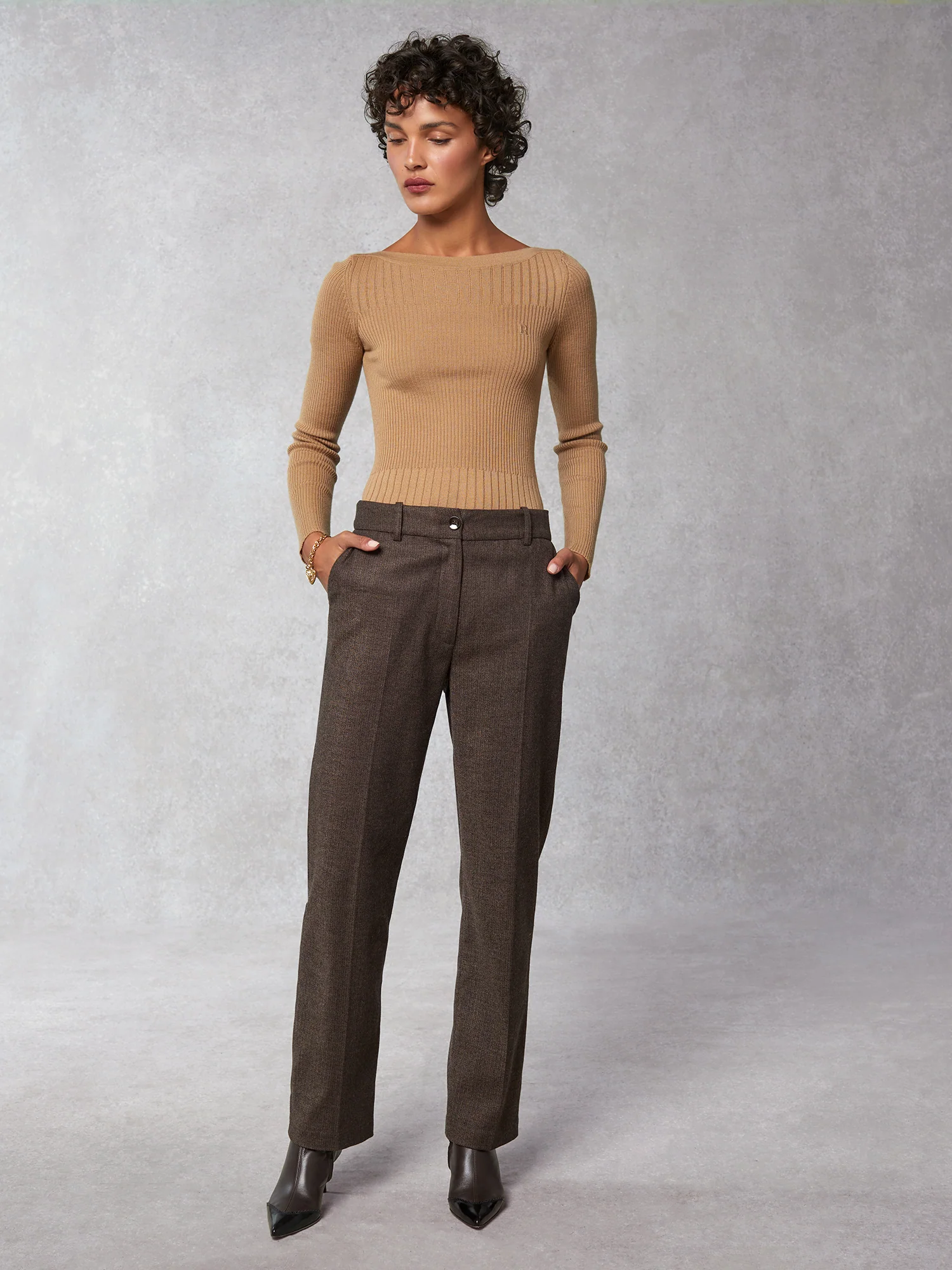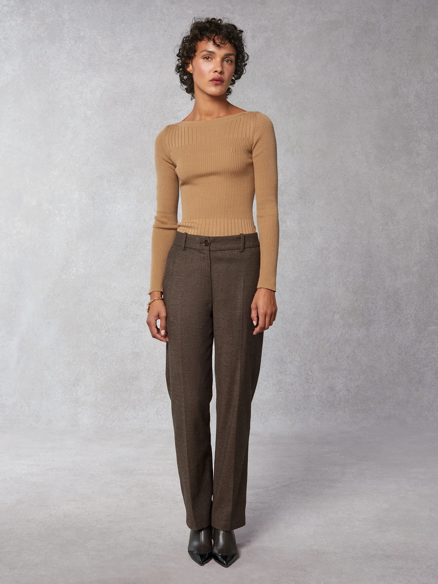 Pull en maille côtelée à manches longues.