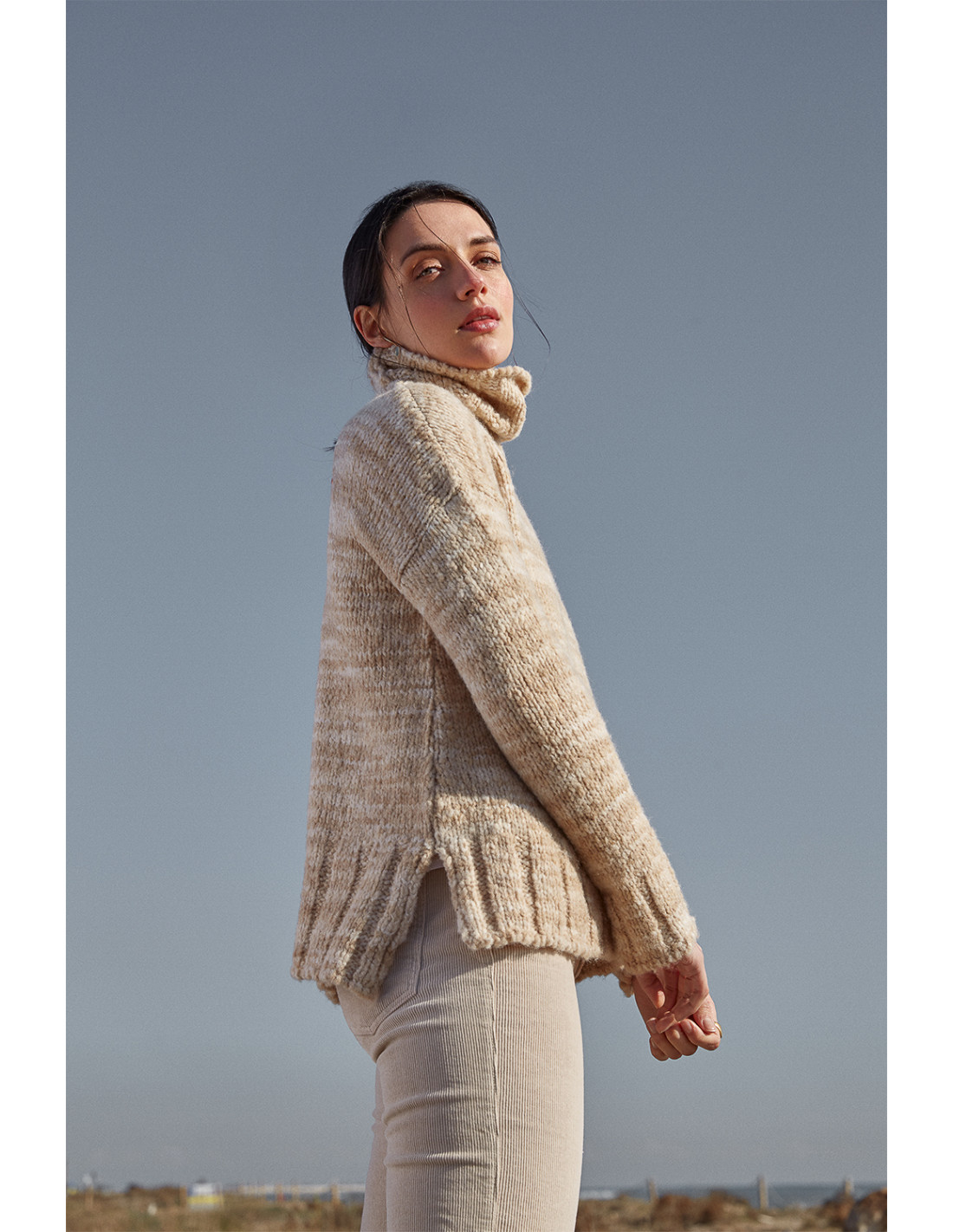 Léger et confortable, il se porte aussi bien seul que sous une veste ou un gilet. Le compagnon idéal pour celles qui aiment les pièces sobres mais raffinées.
