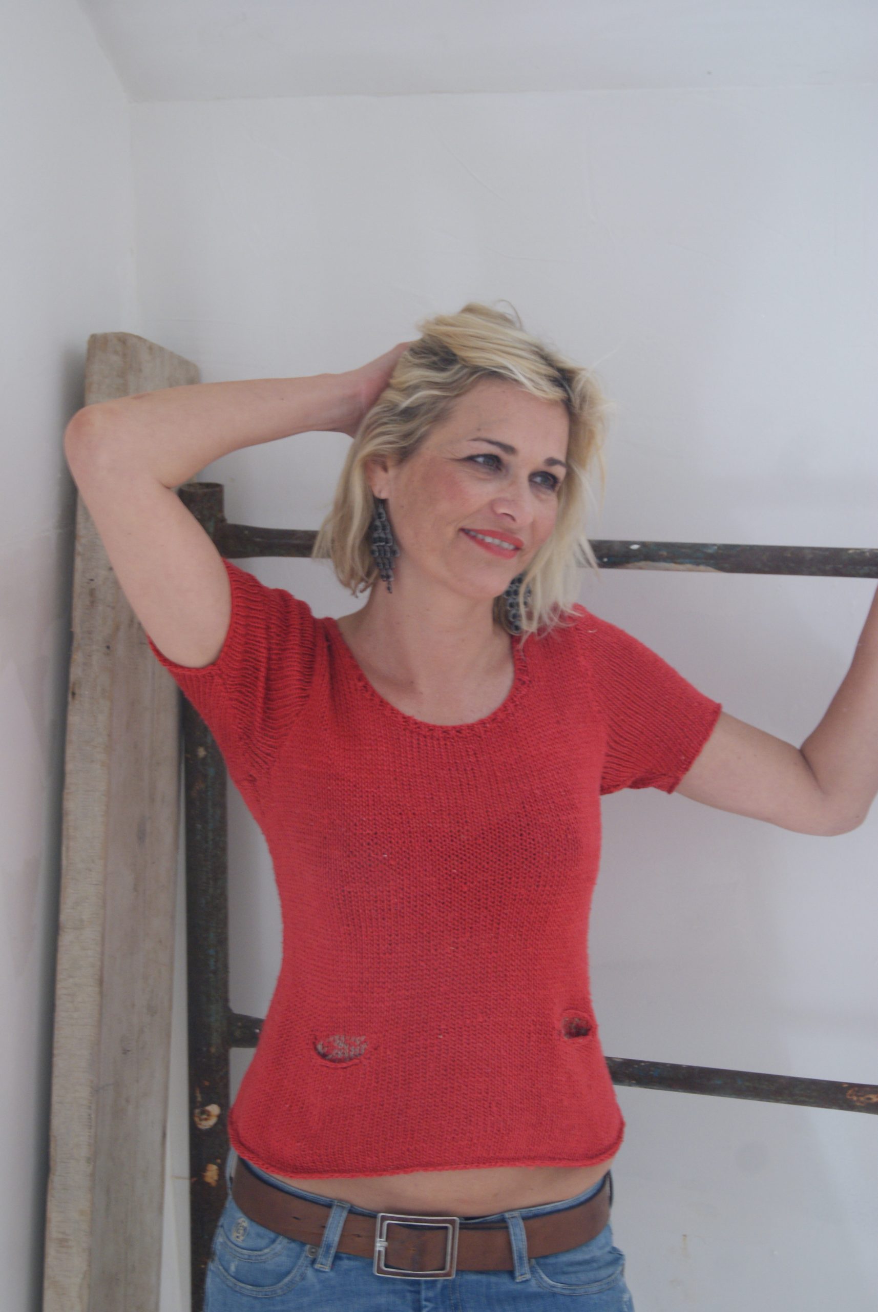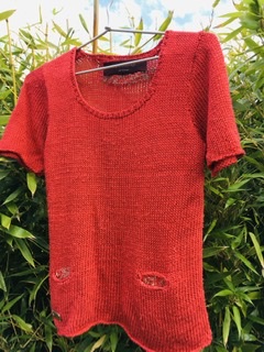Pull en soie rare rouge sombre. Soie issue du commerce équitable.