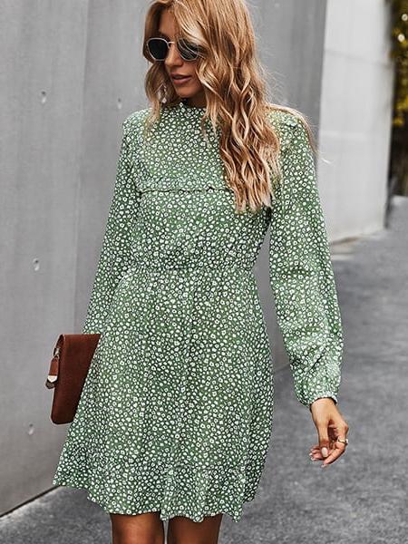 Robe courte fleurie à manches longues, idéale pour l’hiver