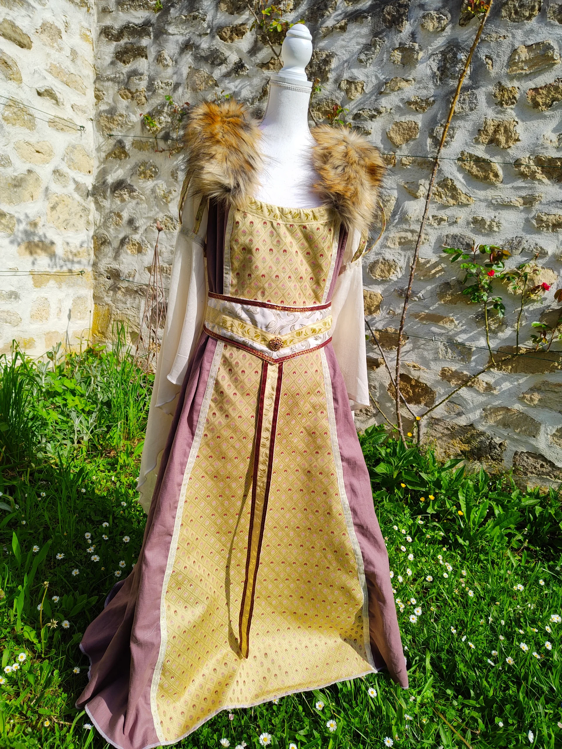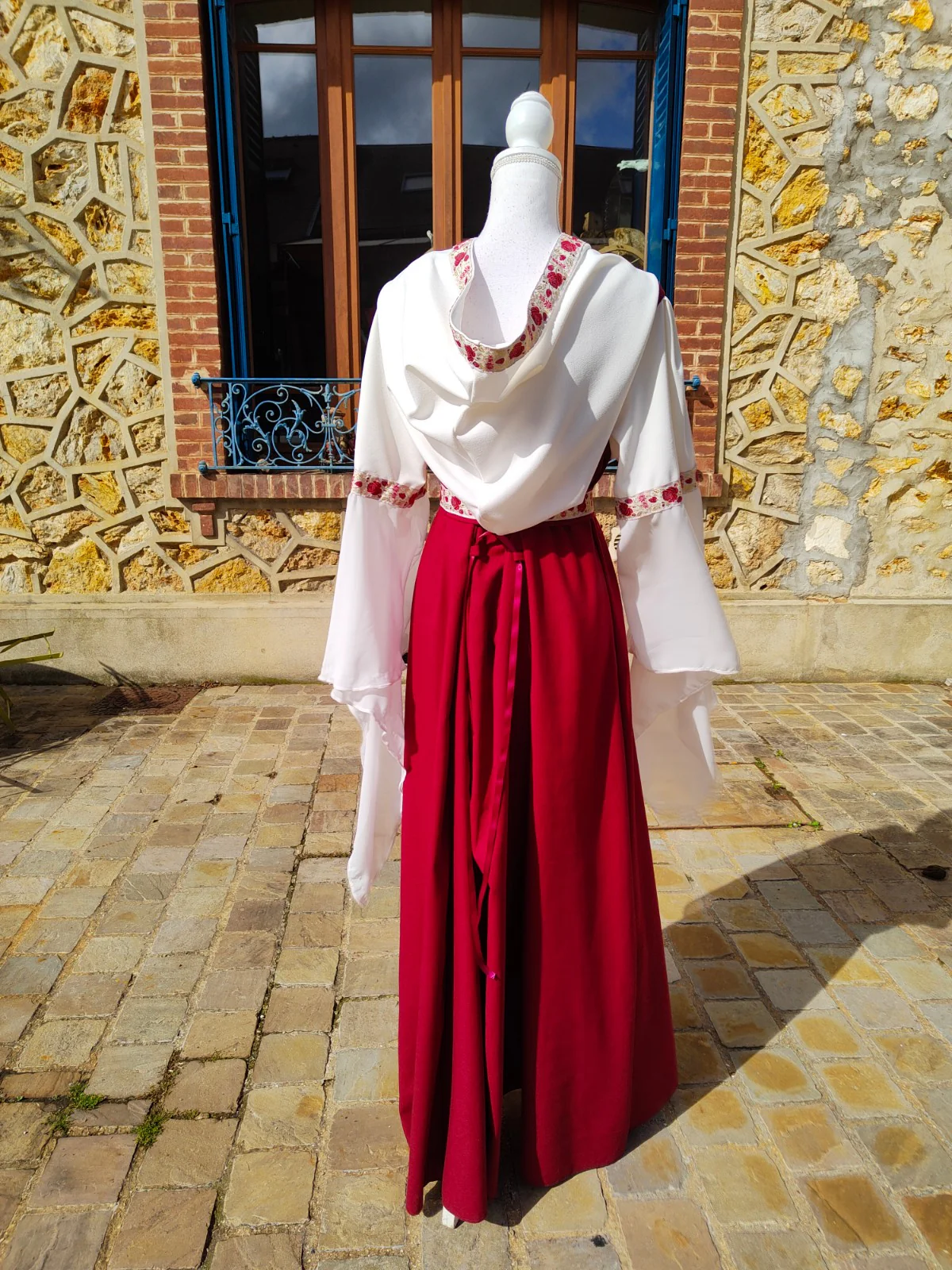Soyez magnifique dans votre robe médiévale en lin rouge et jersey blanc cassé !