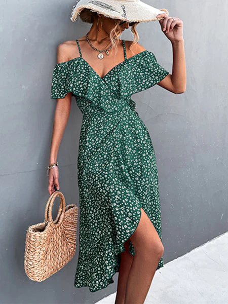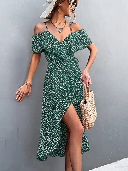 À la fois originale, chic et séduisante, cette robe est idéale pour concocter une tenue bohème moderne et unique. Les détails qui nous font craquer ? Son décolleté volanté ainsi que son imprimé maxi de petits motifs floraux blancs. Vous apprécierez la coupe de cette robe portefeuille fleurie mi-longue qui sublime la silhouette en créant une jolie ouverture au niveau de la jupe.