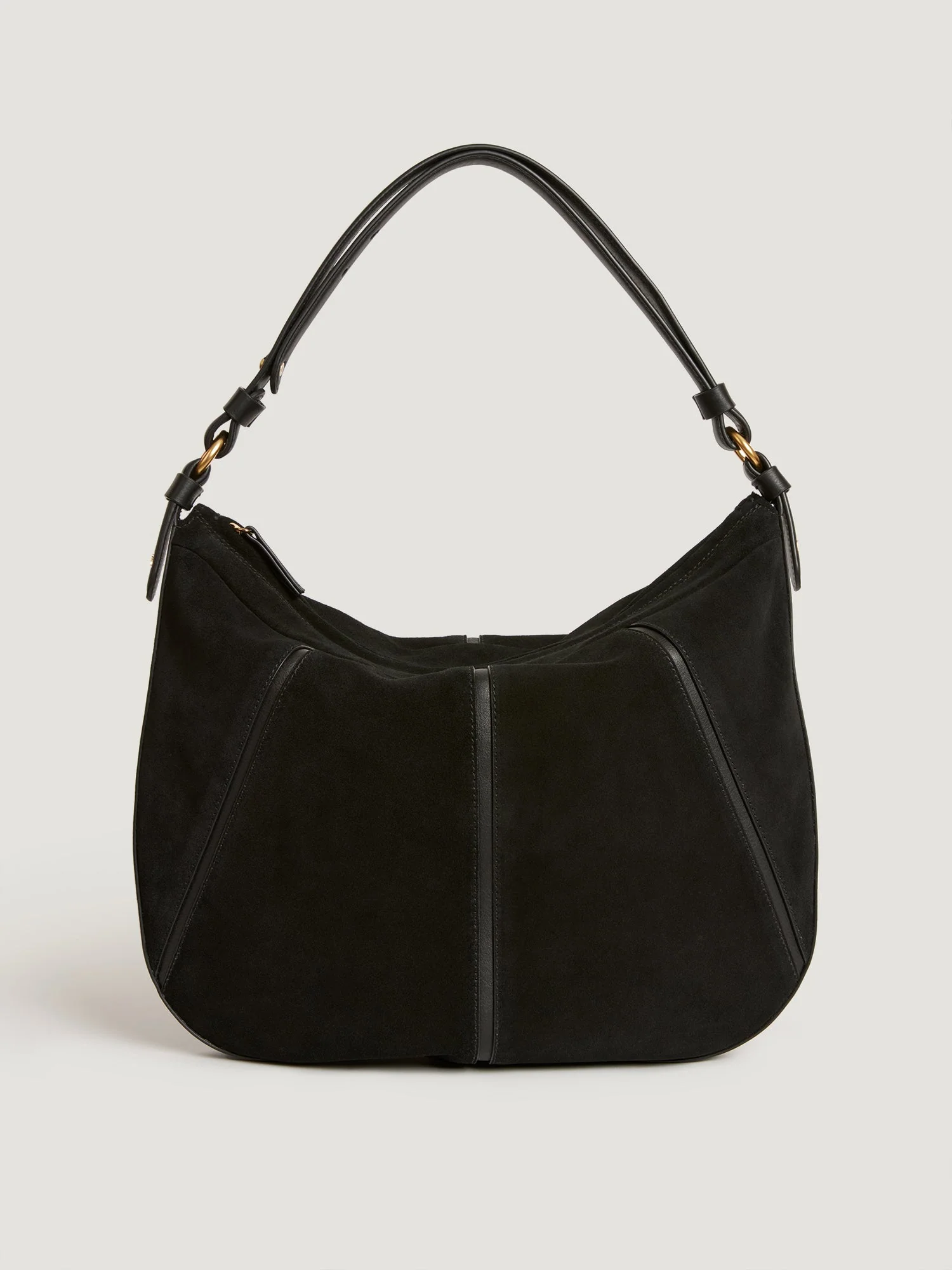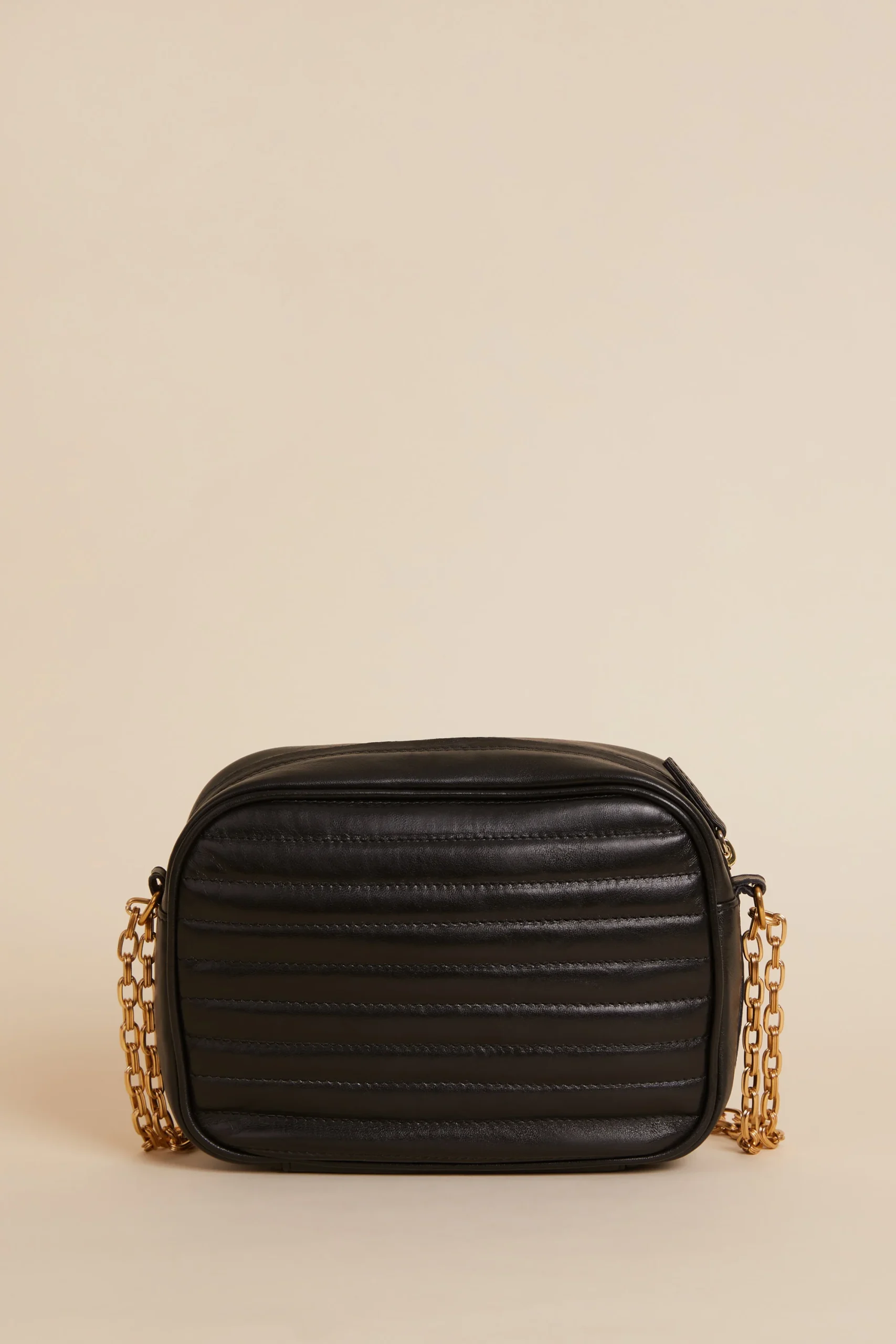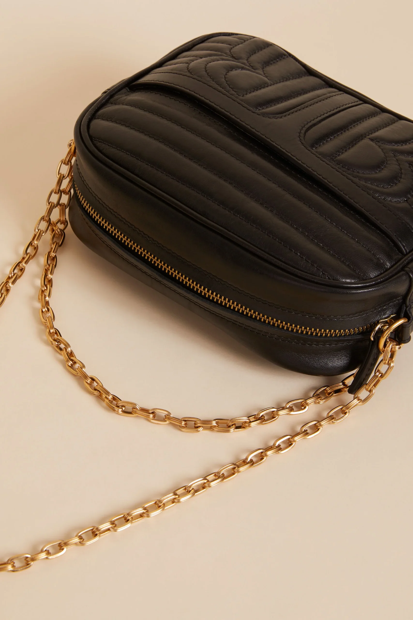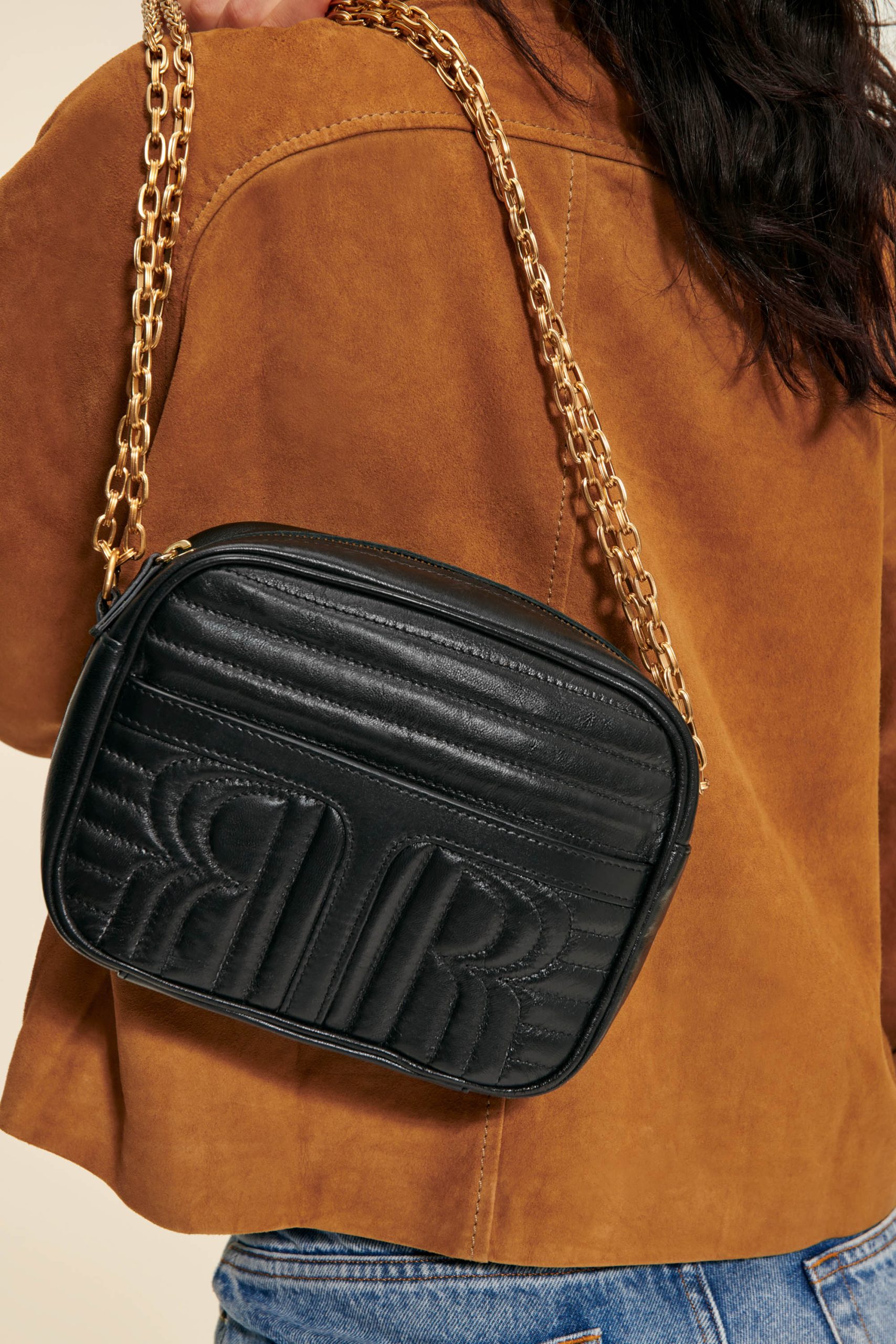 Sac Caméra en cuir noir avec un motif matelassé « R ».