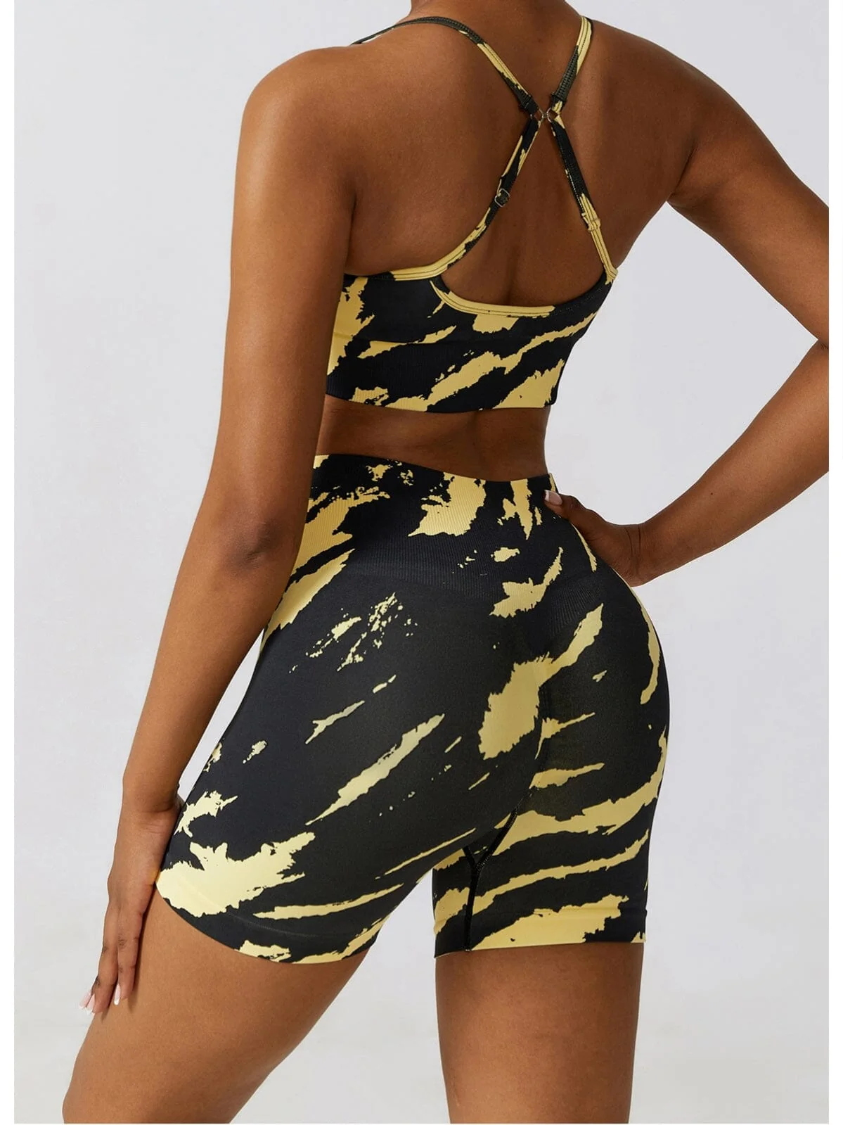 Le design taille haute de ce short assure un maintien optimal, sculptant votre silhouette et offrant un effet push up flatteur pour votre fessier. Vous vous sentirez confiante à chaque mouvement, que ce soit en salle de sport ou en plein air. De plus, l’imprimé tendance apporte une touche de style unique à votre tenue, vous démarquant des autres.
