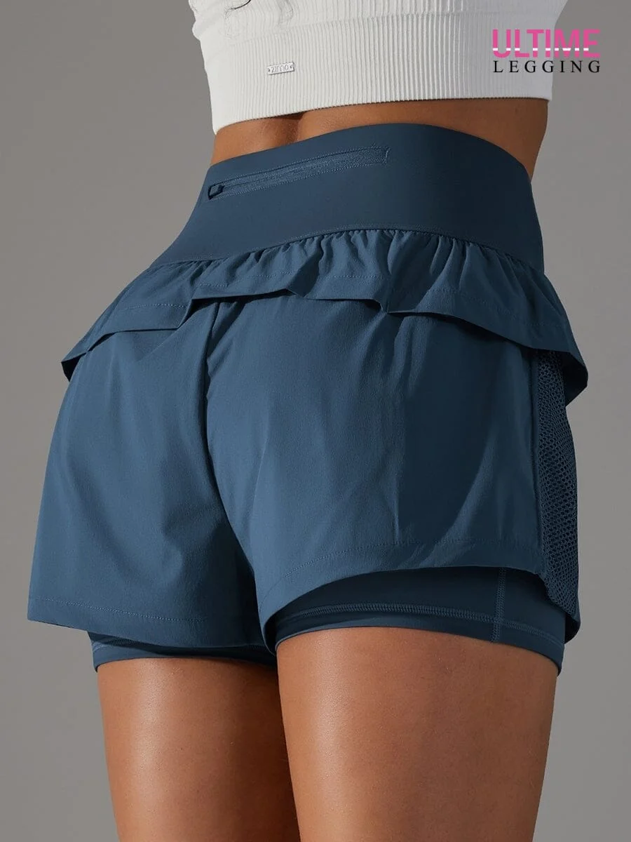Performance et Praticité Unies : Notre short de running 2 en 1 est la fusion parfaite entre fonctionnalité et style. Les poches latérales et la poche zippée dans le dos offrent un espace pratique pour ranger vos essentiels tout en vous permettant de rester concentrée sur votre course.