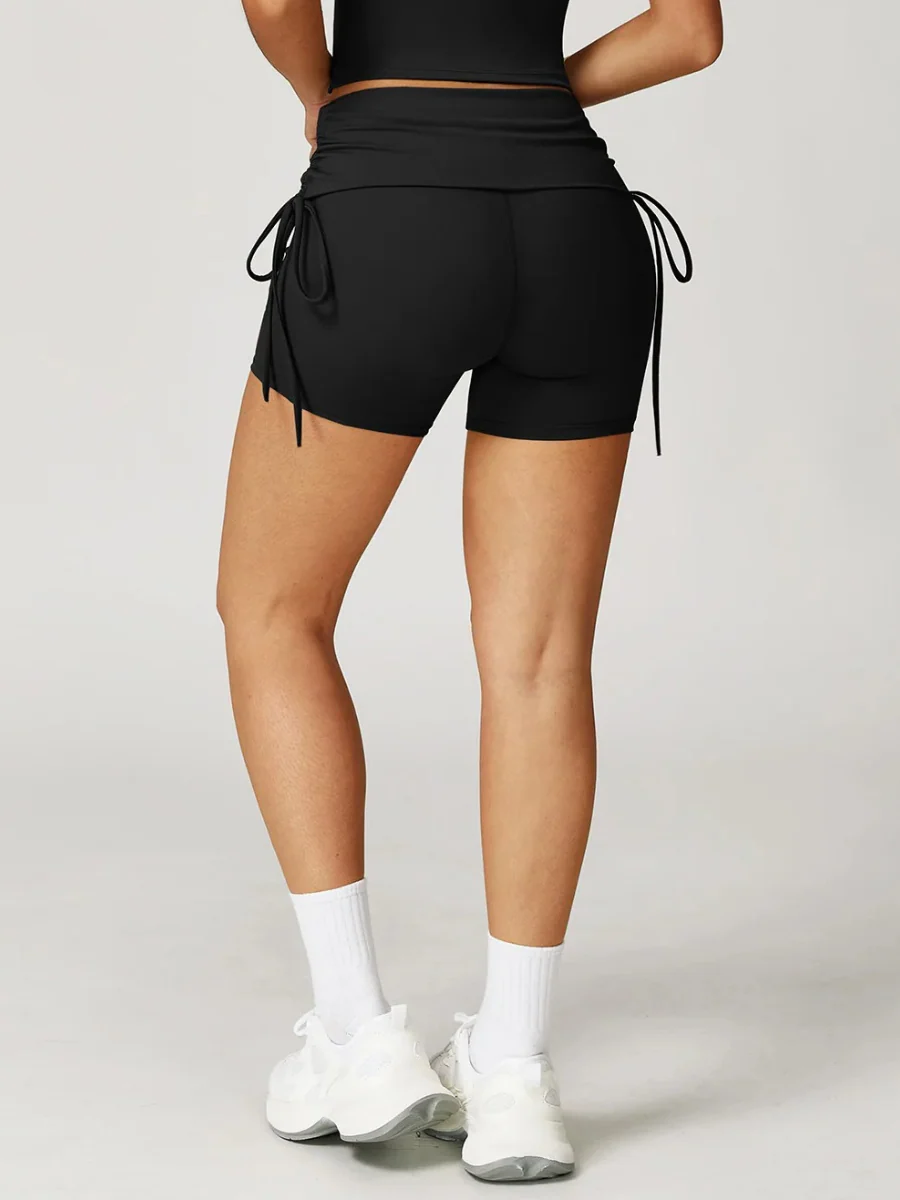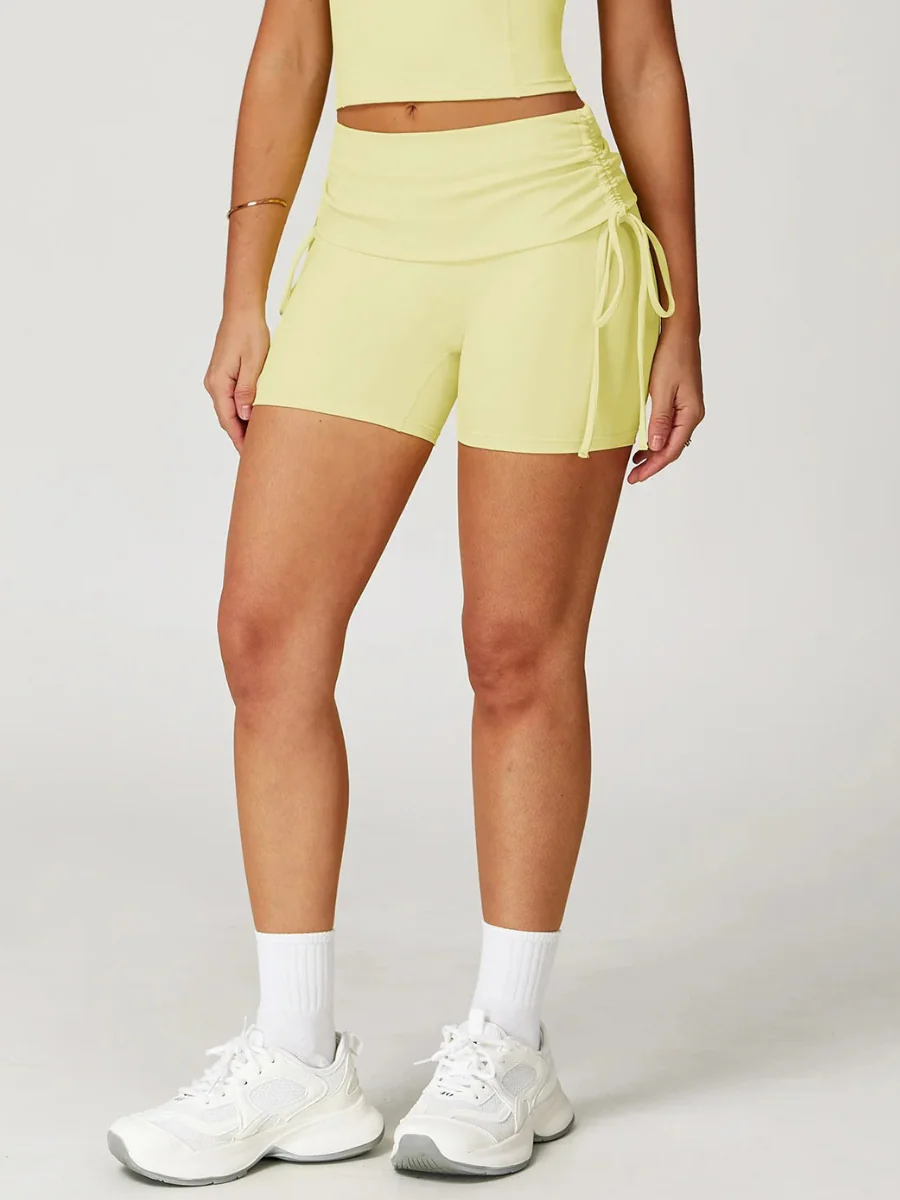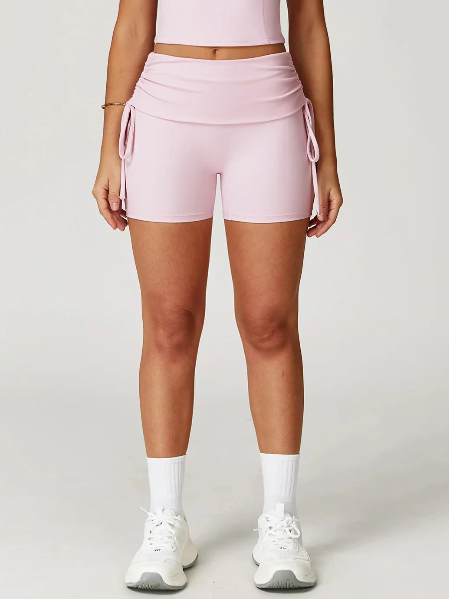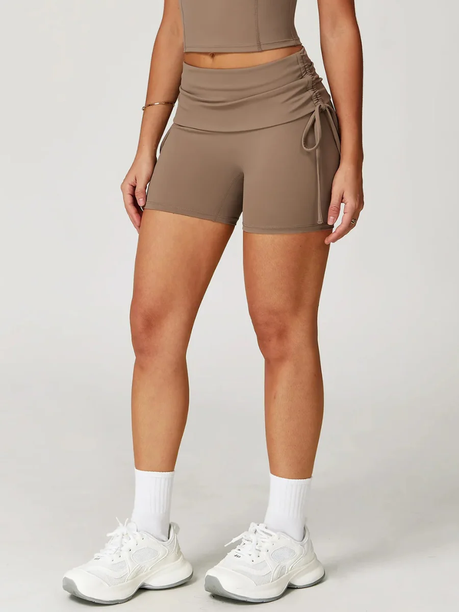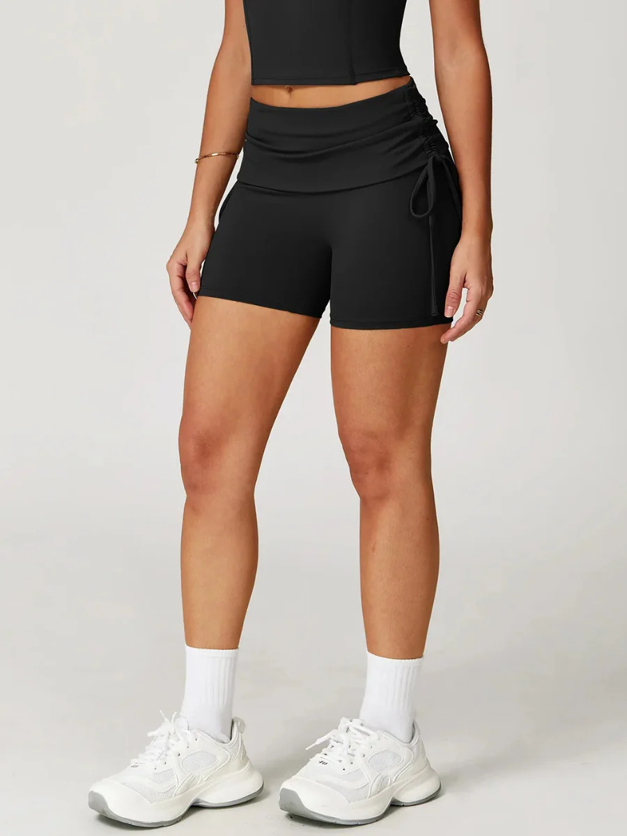 Short de sport taille haute froncé sur les côtés