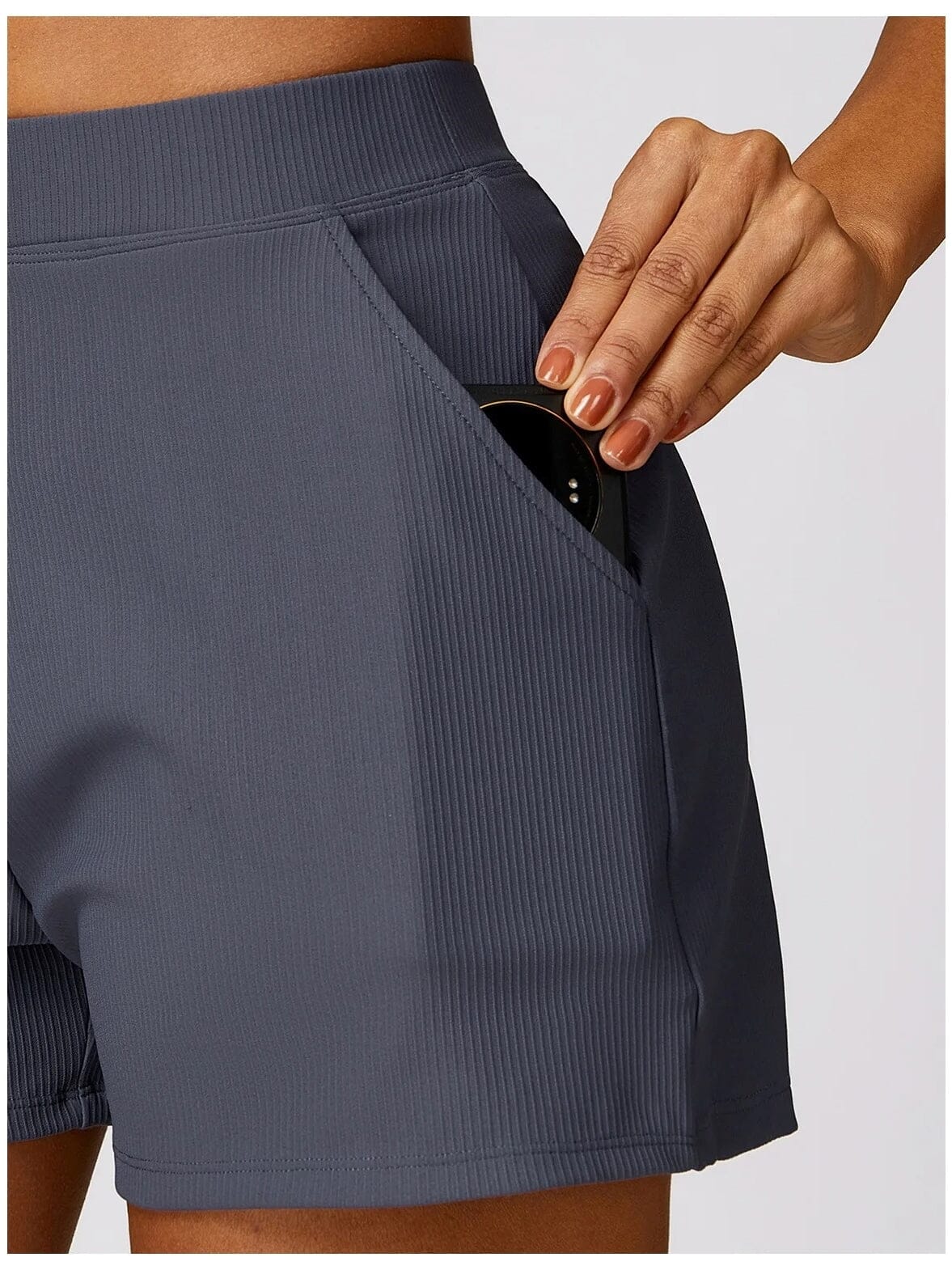 Le tissu finement plissé ajoute une touche de sophistication à ce short de sport pour femme, créant un look dynamique qui vous démarquera. Les deux poches latérales ne sont pas seulement un détail esthétique, mais elles ajoutent également une fonctionnalité pratique pour transporter vos essentiels lors de vos activités.