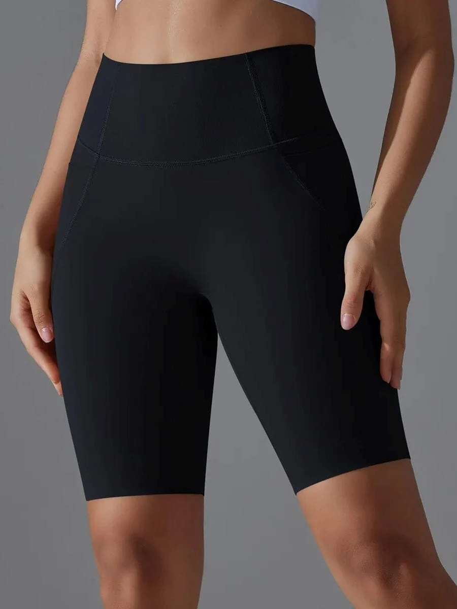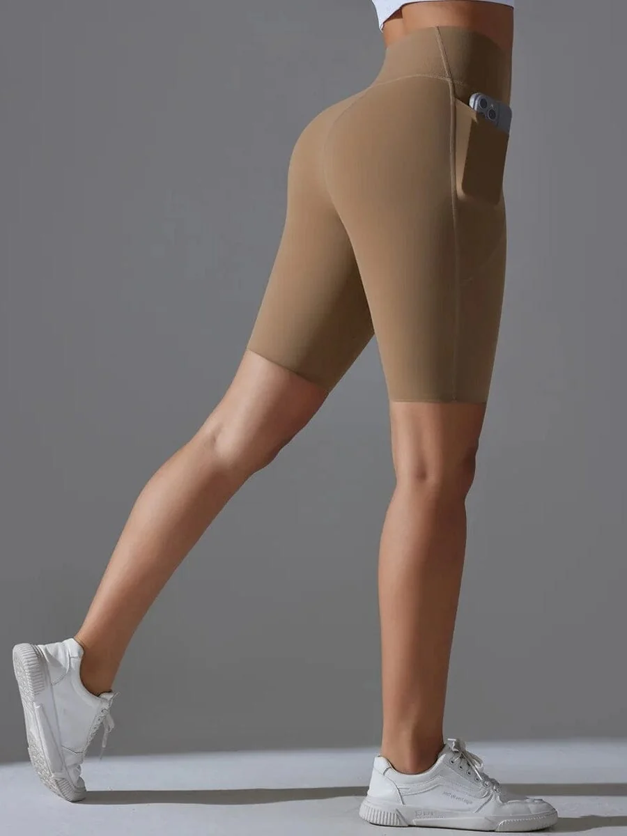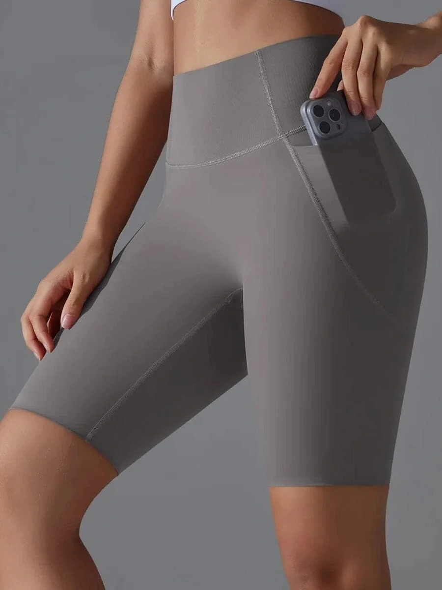 Short Athlétique Femme Mi-Long avec Effet Gainant et Poches Côté