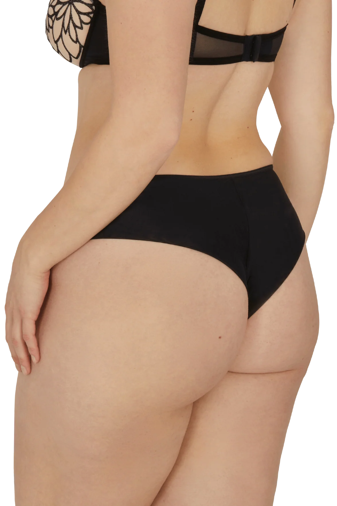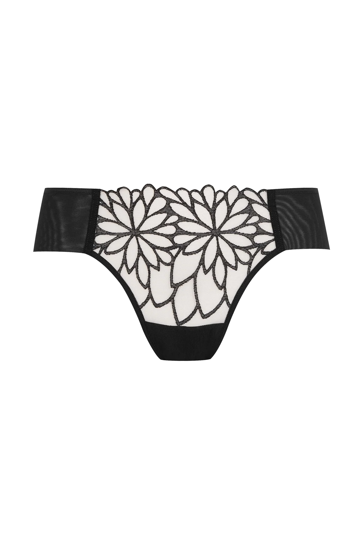 Le slip brésilien Audace dévoile une broderie délicatement travaillée. Cette pièce exceptionnelle joue avec les codes de la séduction grâce à sa broderie florale sur un tulle transparent, permettant de dévoiler la peau de manière audacieuse. Cette transparence crée un effet d’optique sophistiqué, apportant légèreté et sensualité tout en état confortable.