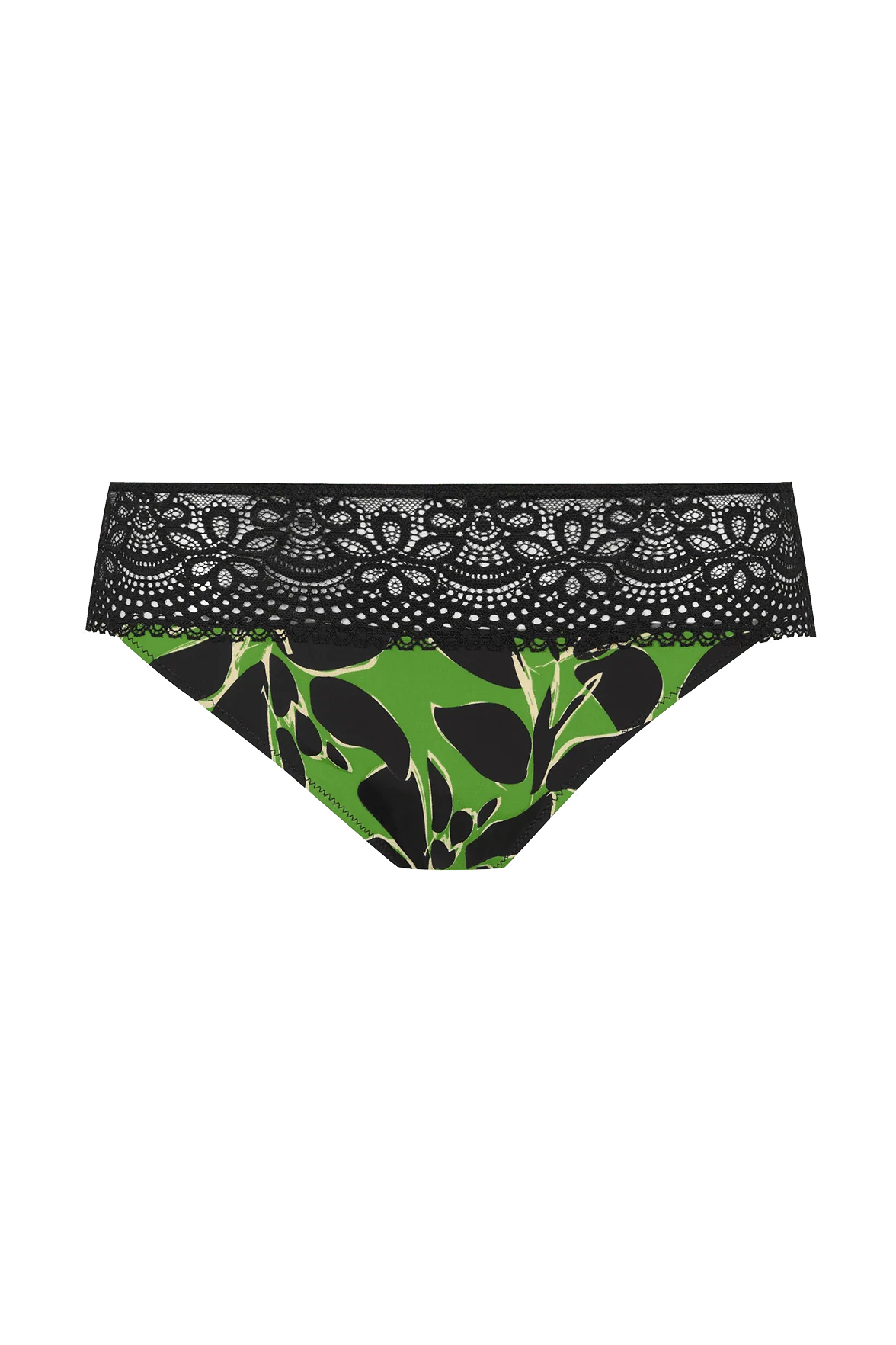 Le slip brésilien L’Irrésistible combine discrétion et féminité. Sa forme moderne est rehaussée par une ceinture en dentelle florale, ajoutant une touche de sensualité et d’élégance. Le dos est délicatement orné de dentelle. La maille ultra-douce sensation microfibre assure un confort optimal.
