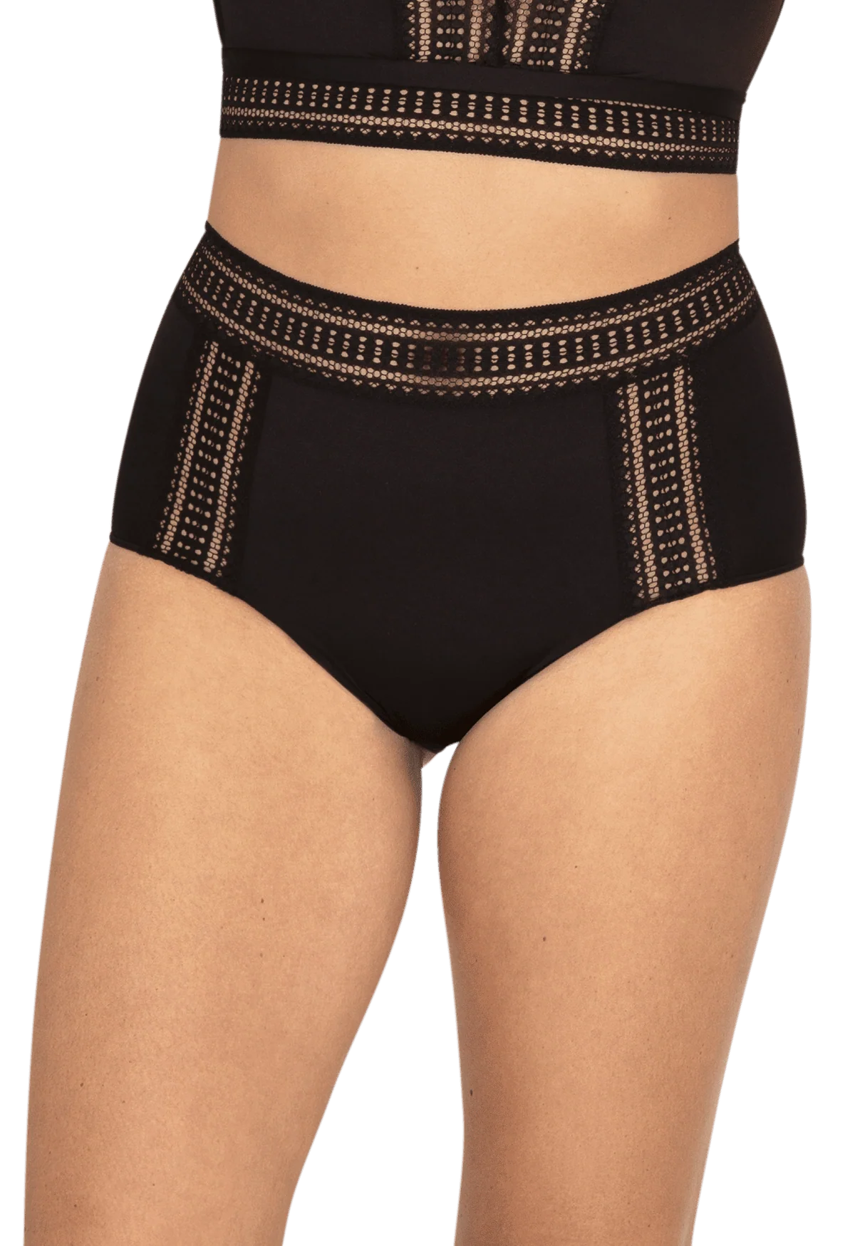 Le slip brésilien L’Irrésistible combine discrétion et féminité. Sa forme moderne est rehaussée par une ceinture en dentelle florale, ajoutant une touche de sensualité et d’élégance. Le dos est délicatement orné de dentelle. La maille ultra-douce sensation microfibre assure un confort optimal.