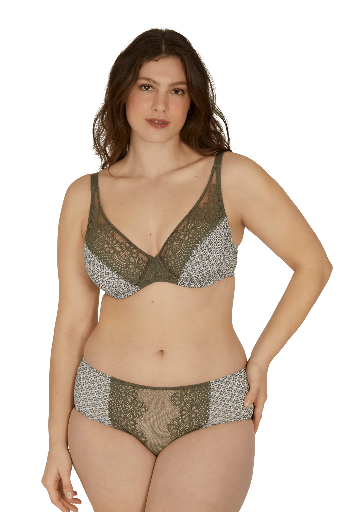 Le soutien-gorge à armatures l’Irrésistible offre un maintien exceptionnel grâce à sa forme emboîtante et son dos cheminée, idéal même pour les poitrines généreuses. Sa dentelle florale élégante et son entre-seins en tulle apportent douceur et féminité, sublimant le décolleté sans compromis sur le confort.