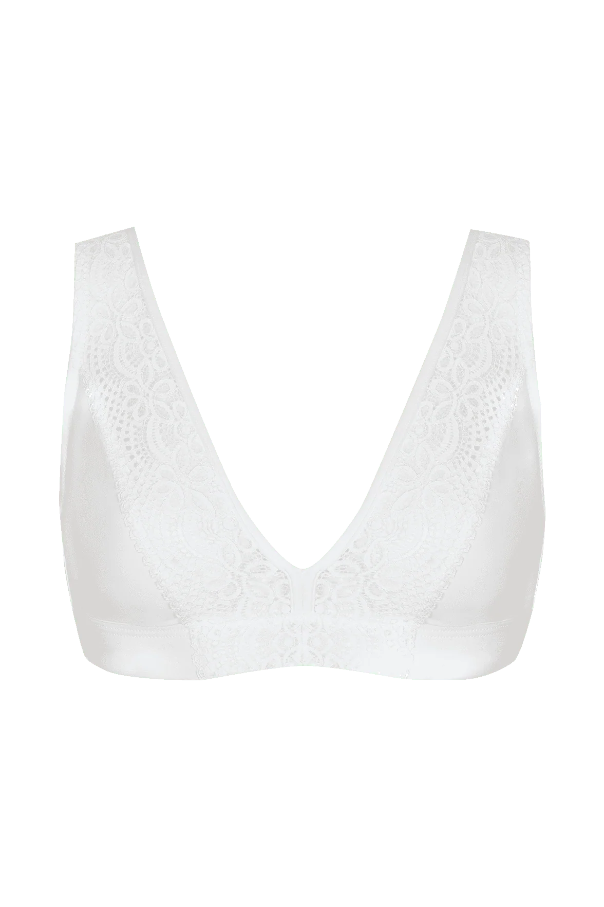 Le soutien-gorge sans armatures L’Irrésistible allie confort et élégance grâce à sa forme foulard enveloppante. Il assure un maintien léger pour une poitrine naturelle. La dentelle florale sublime le décolleté plongeant. L’élastique à la basque offre un soutien optimal.