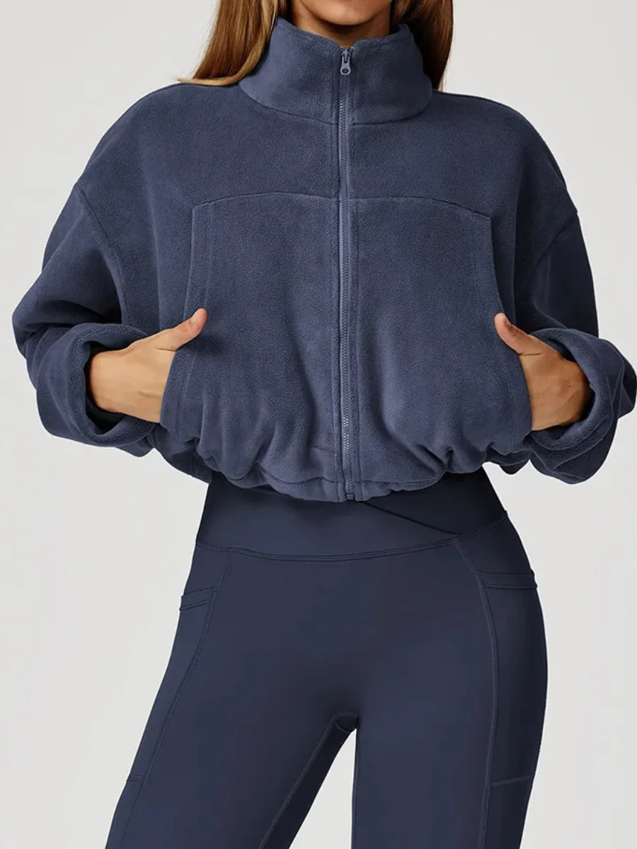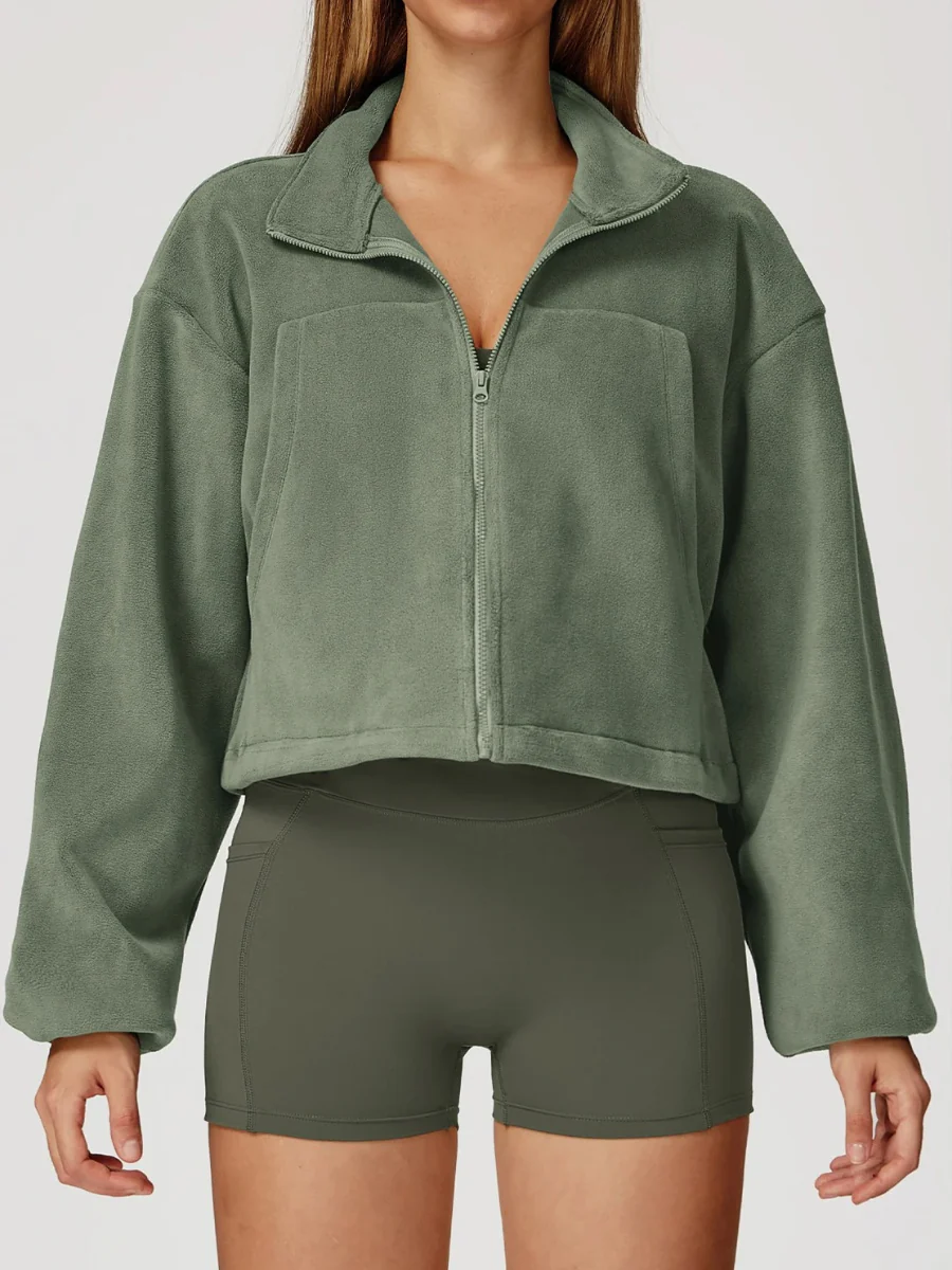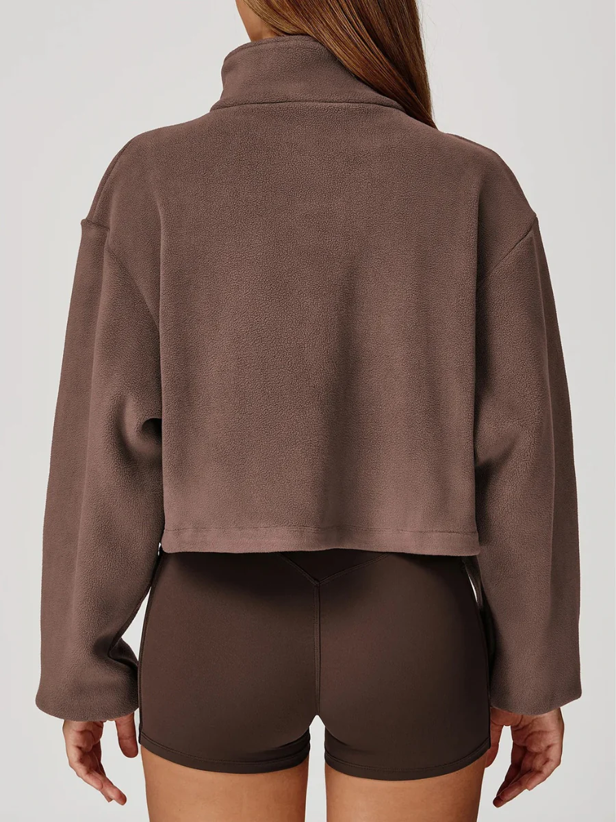 Plongez dans un cocon de chaleur et de légèreté avec ce sweat de yoga en polaire ultra-douce. Sa coupe légèrement crop et ses manches amples offrent un confort absolu et une liberté totale de mouvement, idéale pour vos séances de yoga, de stretching ou vos moments cocooning. Sa fermeture zippée et son col montant permettent d’ajuster facilement la chaleur selon vos besoins. Confectionné dans une matière respirante et moelleuse, il allie style décontracté et bien-être. Disponible en plusieurs teintes naturelles, il s’associe parfaitement à vos leggings ou shorts favoris.
