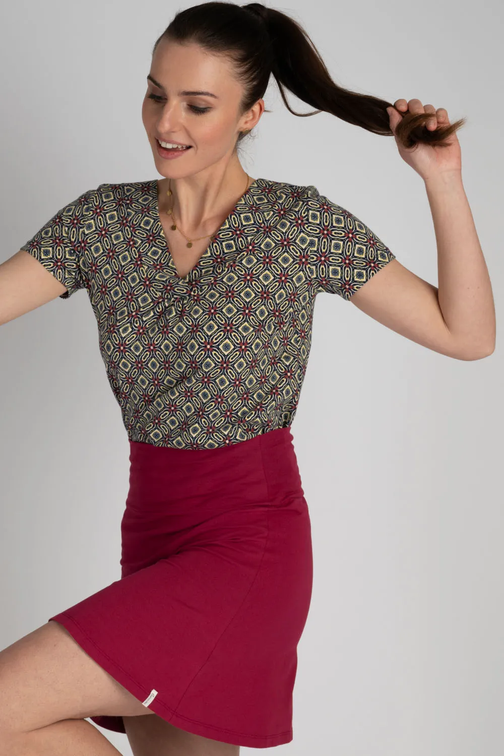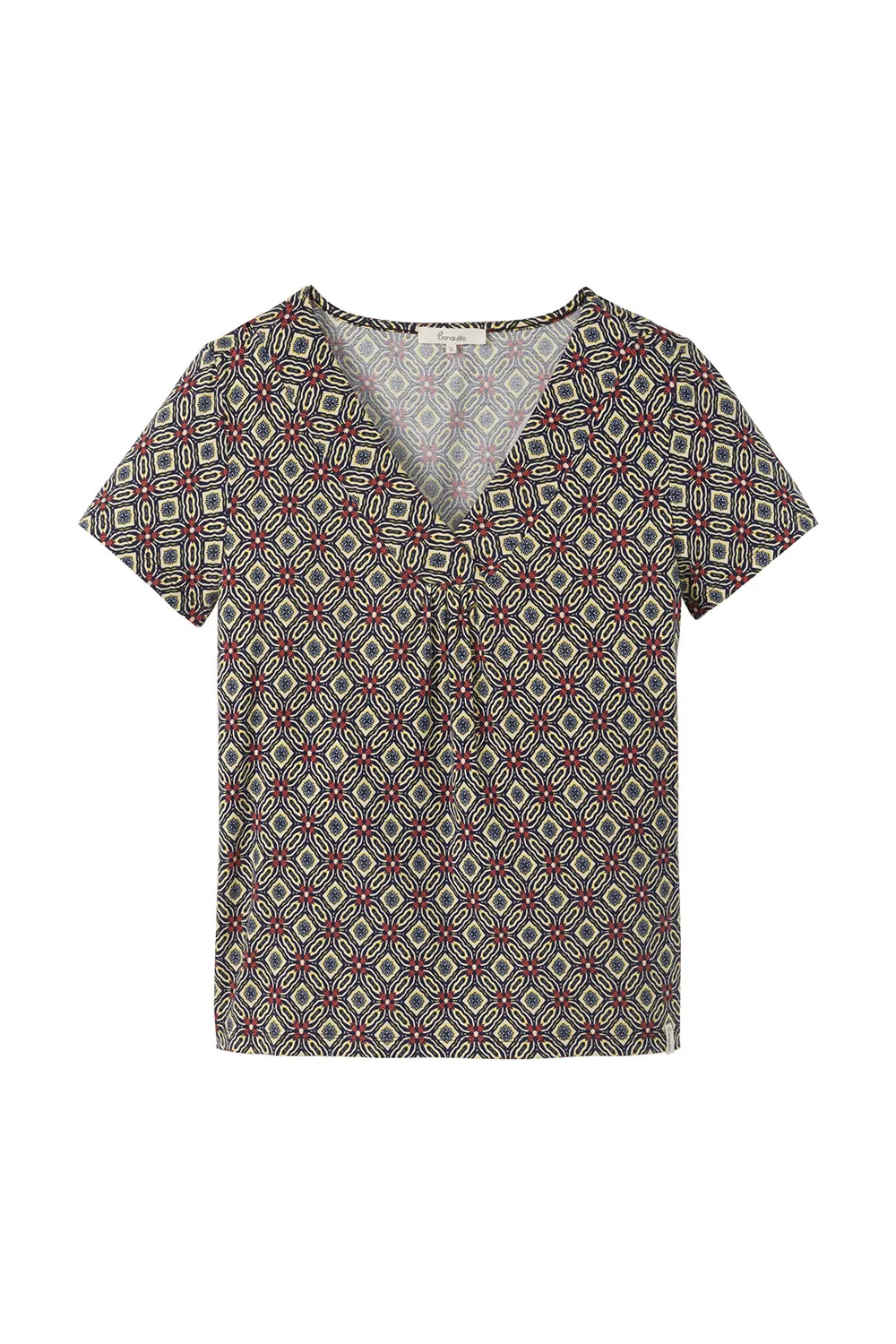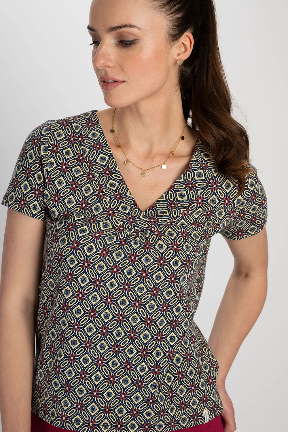 T-shirt col V motifs kalidéoscope – Coton bio – Tranquillo