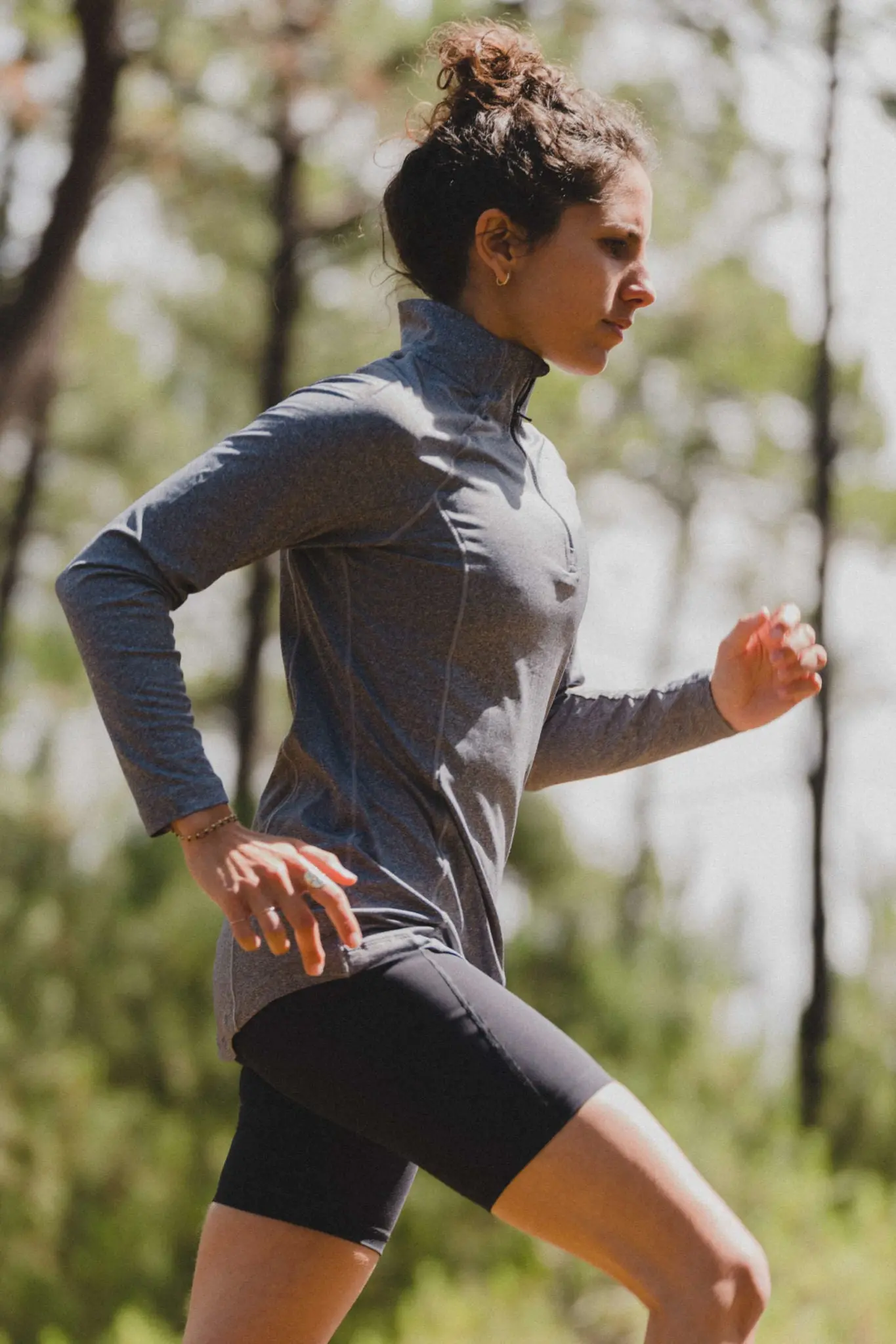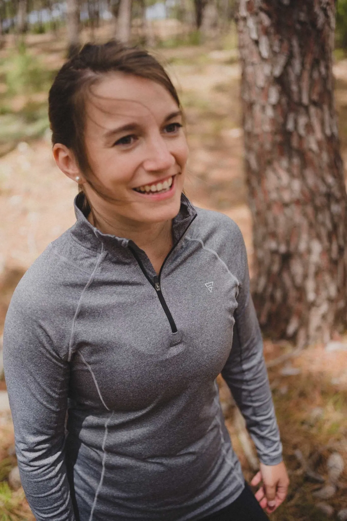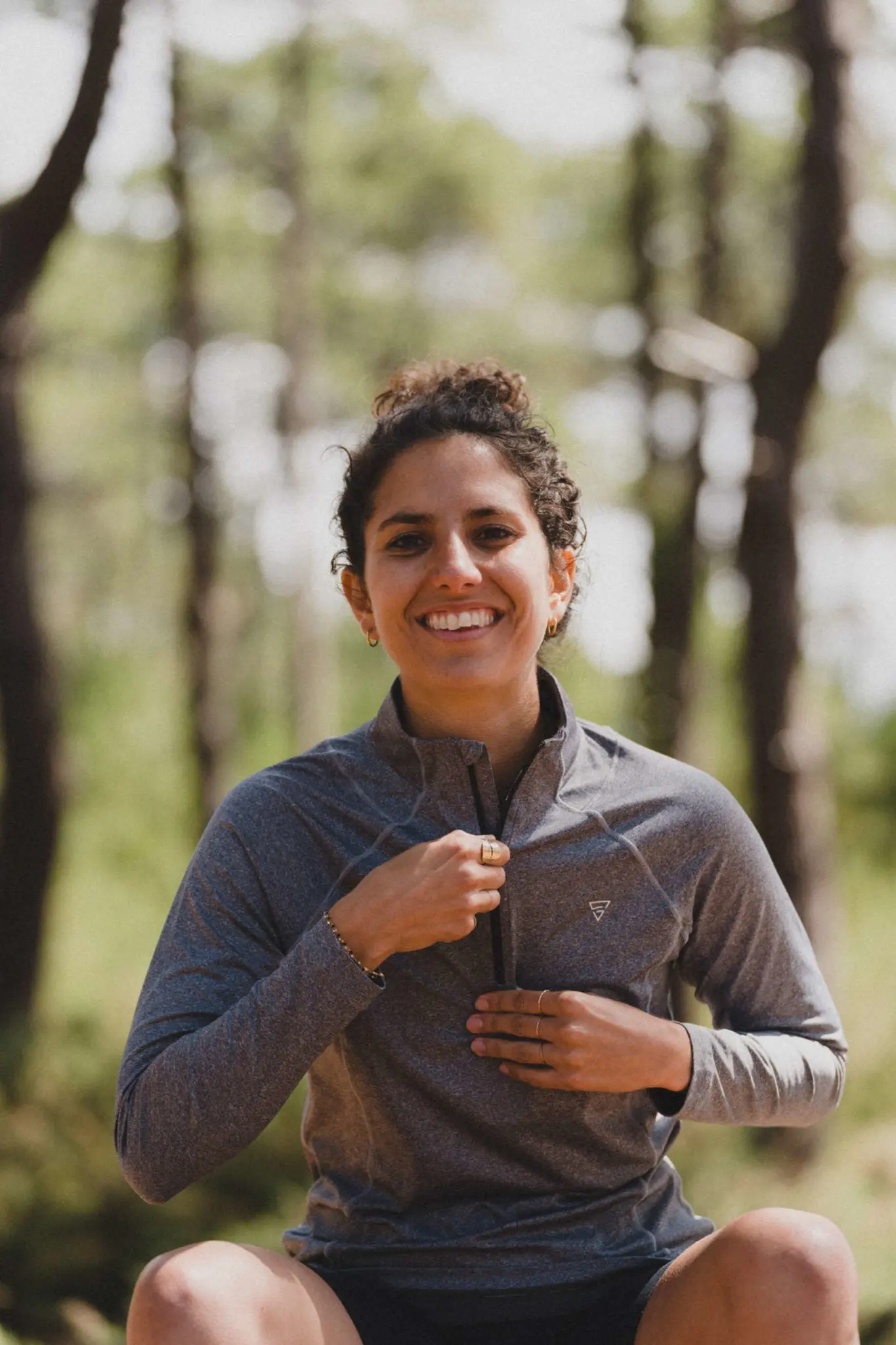 Avec ses manches longues et sa matière respirante ultra-douce, il vous garde au chaud juste ce qu’il faut, sans effet cocotte-minute. Sa coupe ajustée et féminine épouse vos mouvements à la perfection, que ce soit en running, en yoga ou en rando. Un essentiel stylé, polyvalent et tellement agréable à porter.