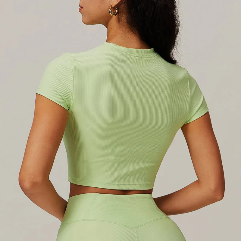 T-shirt de Pilates et yoga côtelé, court et sculptant