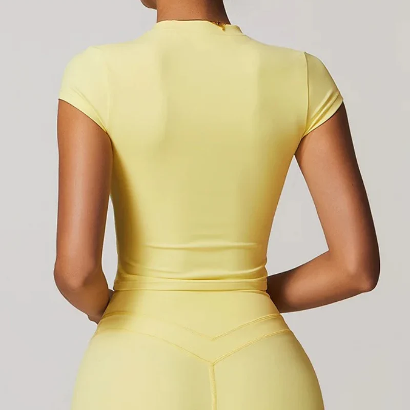 Ce t-shirt de yoga court et ajusté est l’incarnation parfaite de la féminité et du confort. Son design soigneusement conçu épouse les courbes avec élégance, offrant une silhouette flatteuse et une grande liberté de mouvement. Fabriqué dans un tissu doux et respirant, il procure une sensation de légèreté inégalée. Idéal pour toutes les séances, il allie fonctionnalité et style, vous assurant de rester à la fois confiante et confortable.