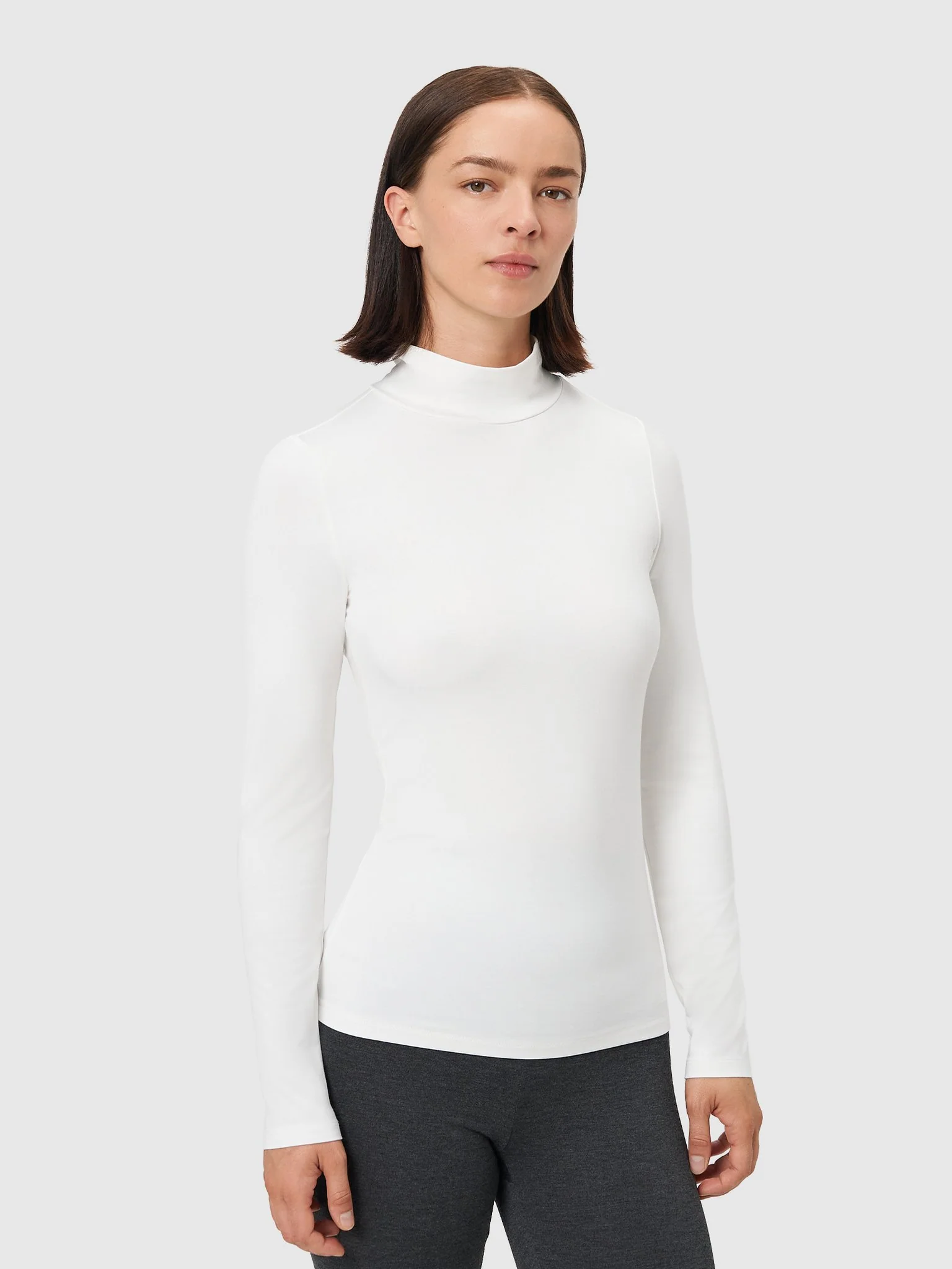 - Noraa Warm Turtleneck : coupe ajustée avec col montant, intérieur en bambou gratté pour la chaleur, respirant et extensible