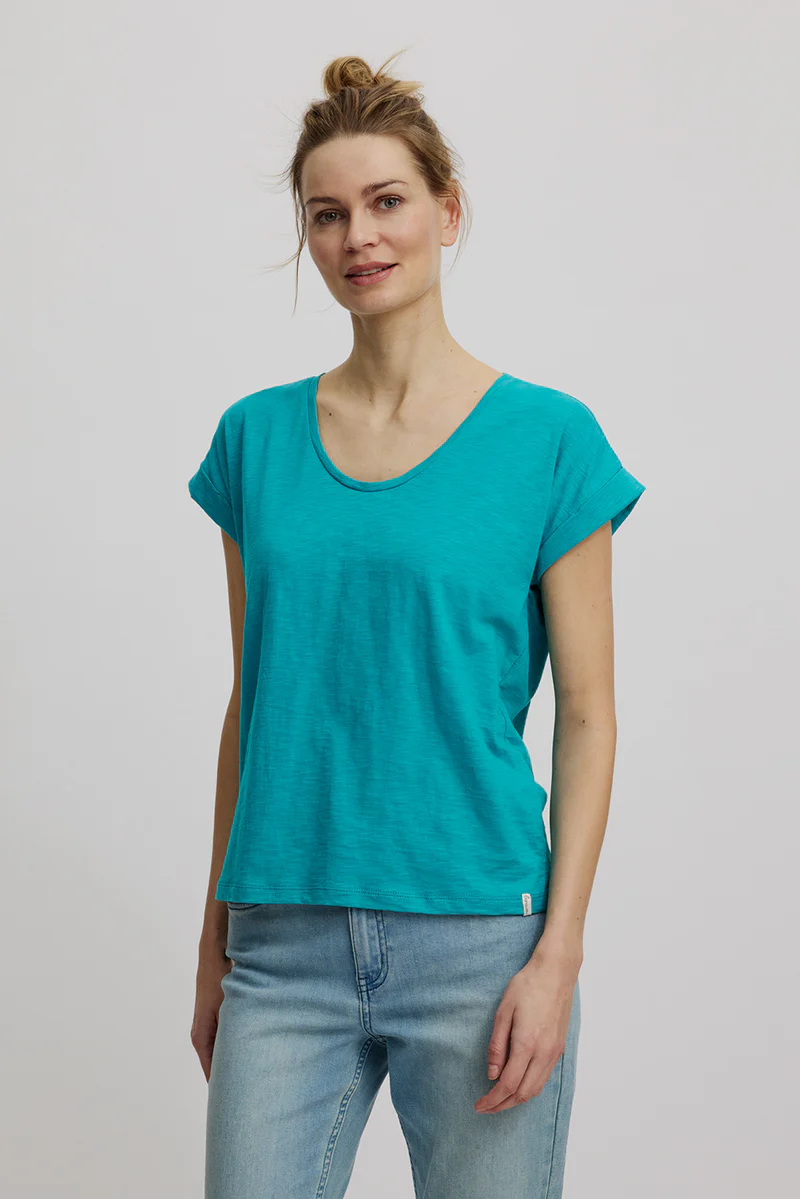 Top col rond bleu turquoise – Coton bio – Tranquillo