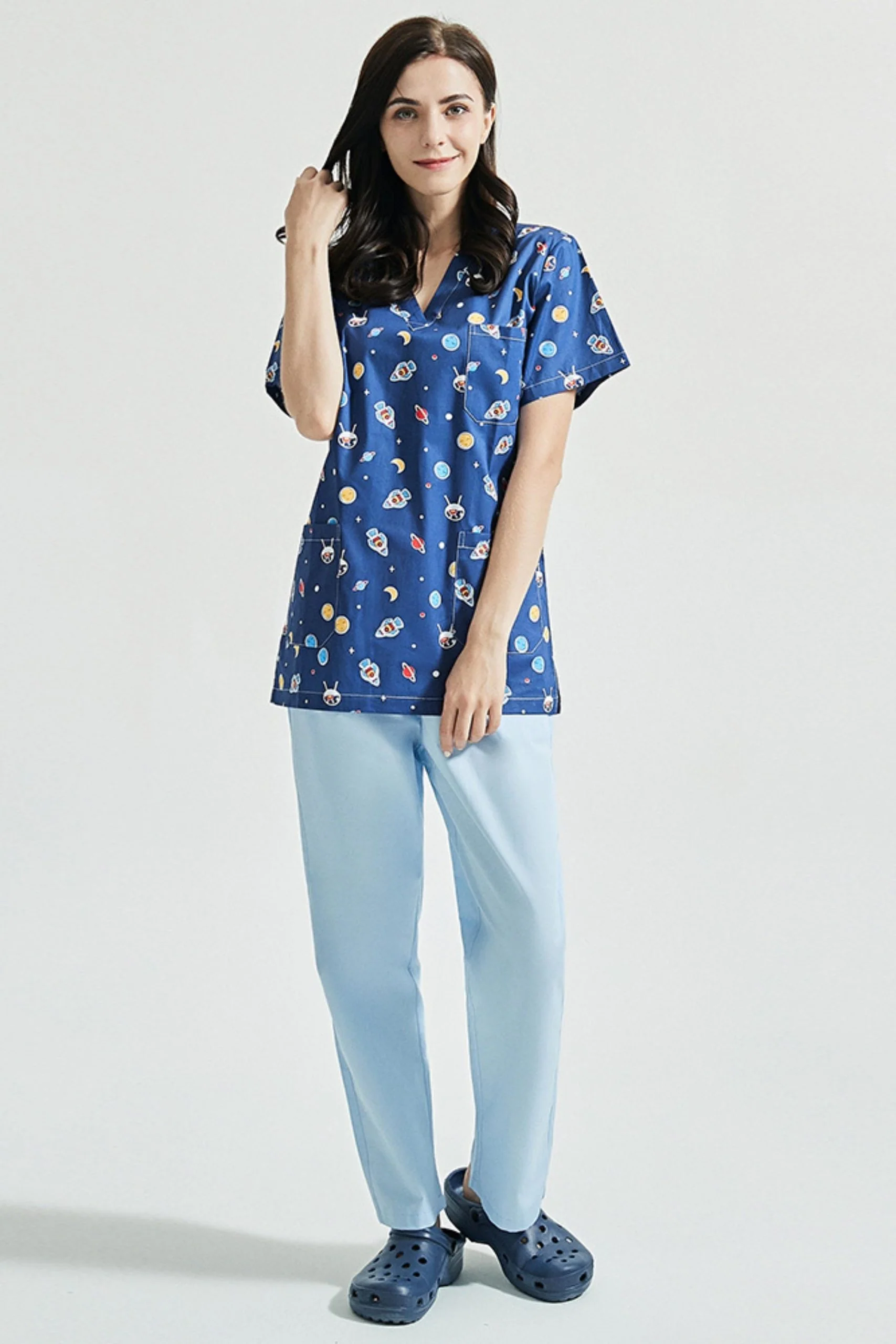 Tunique médicale manches courtes 100% coton aux motifs modernes pour égayer vos patients.