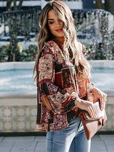 Les manches longues lanternes donnent du volume aux bras et la coupe évasée sera idéale pour camoufler un petit ventre d’hiver. Cette tunique grande taille à fleurs, associez-la avec un jean slim pour attirer l’œil sur vos cuisses et un sac à main aux tons ethniques.