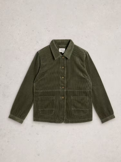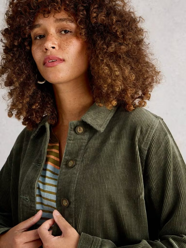 Si vous cherchez la touche finale idéale pour votre tenue, voici peut-être celle-ci. Cette jolie veste en velours côtelé kaki est confectionnée en coton biologique doux. Elle se porte à merveille avec un jean large.