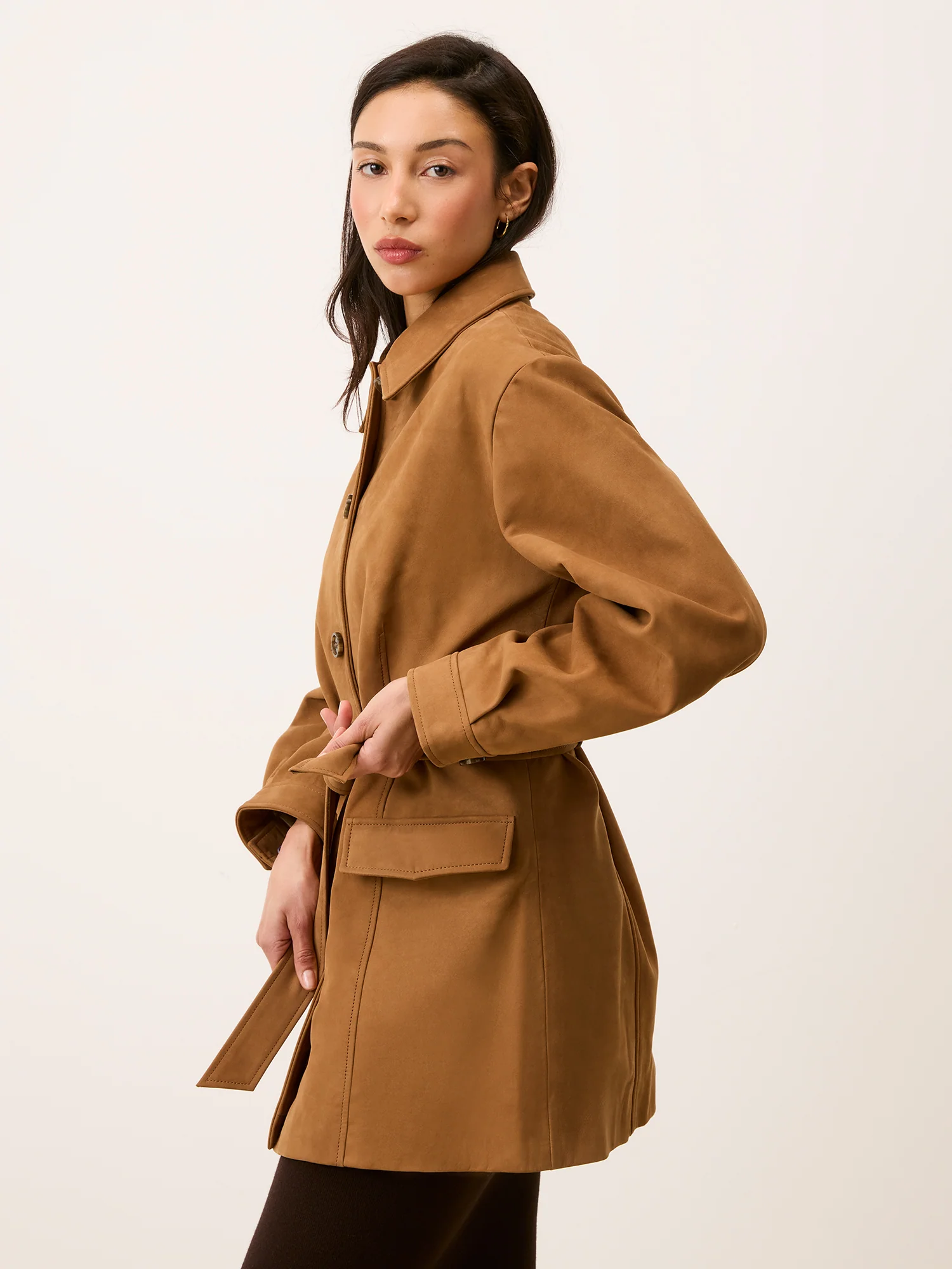 Veste mi-longue en cuir.