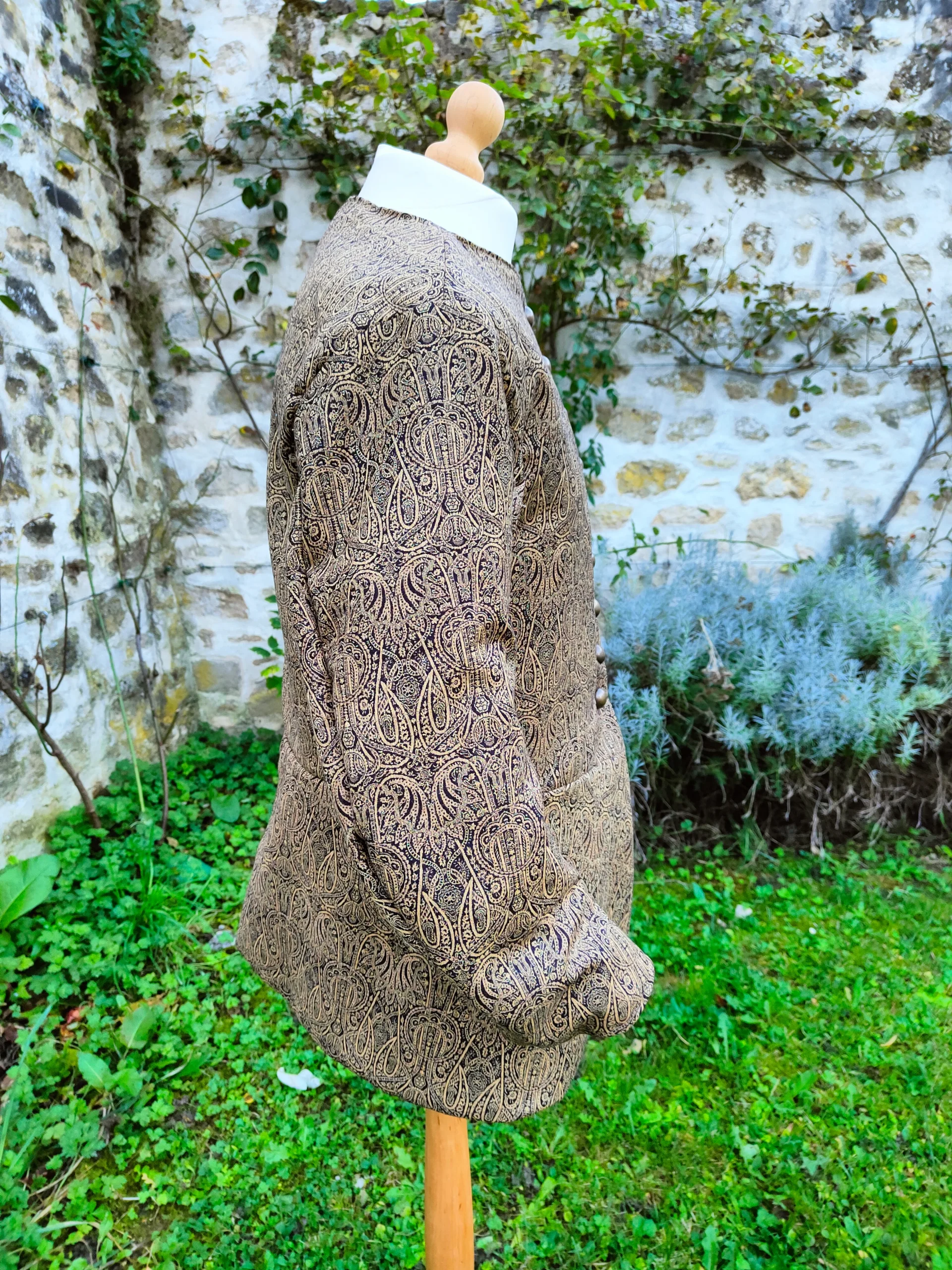 Veste confectionnée dans un cachemire très doux doublée en lin, parfaite pour costume médiéval, avec basques.