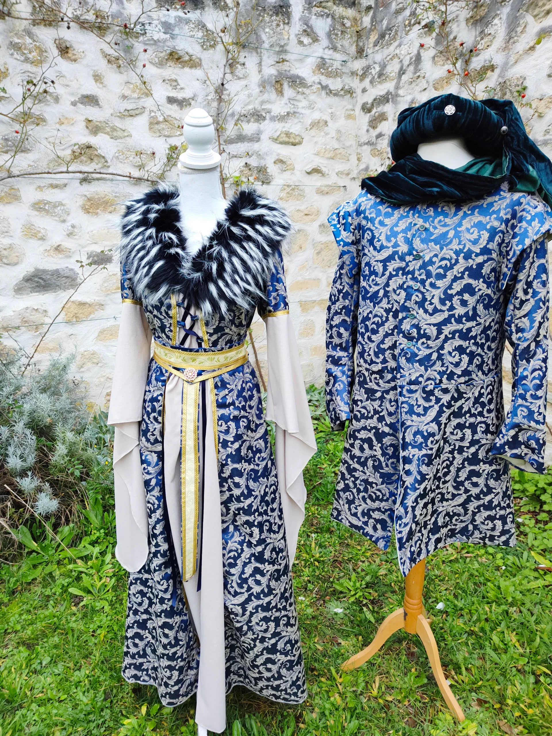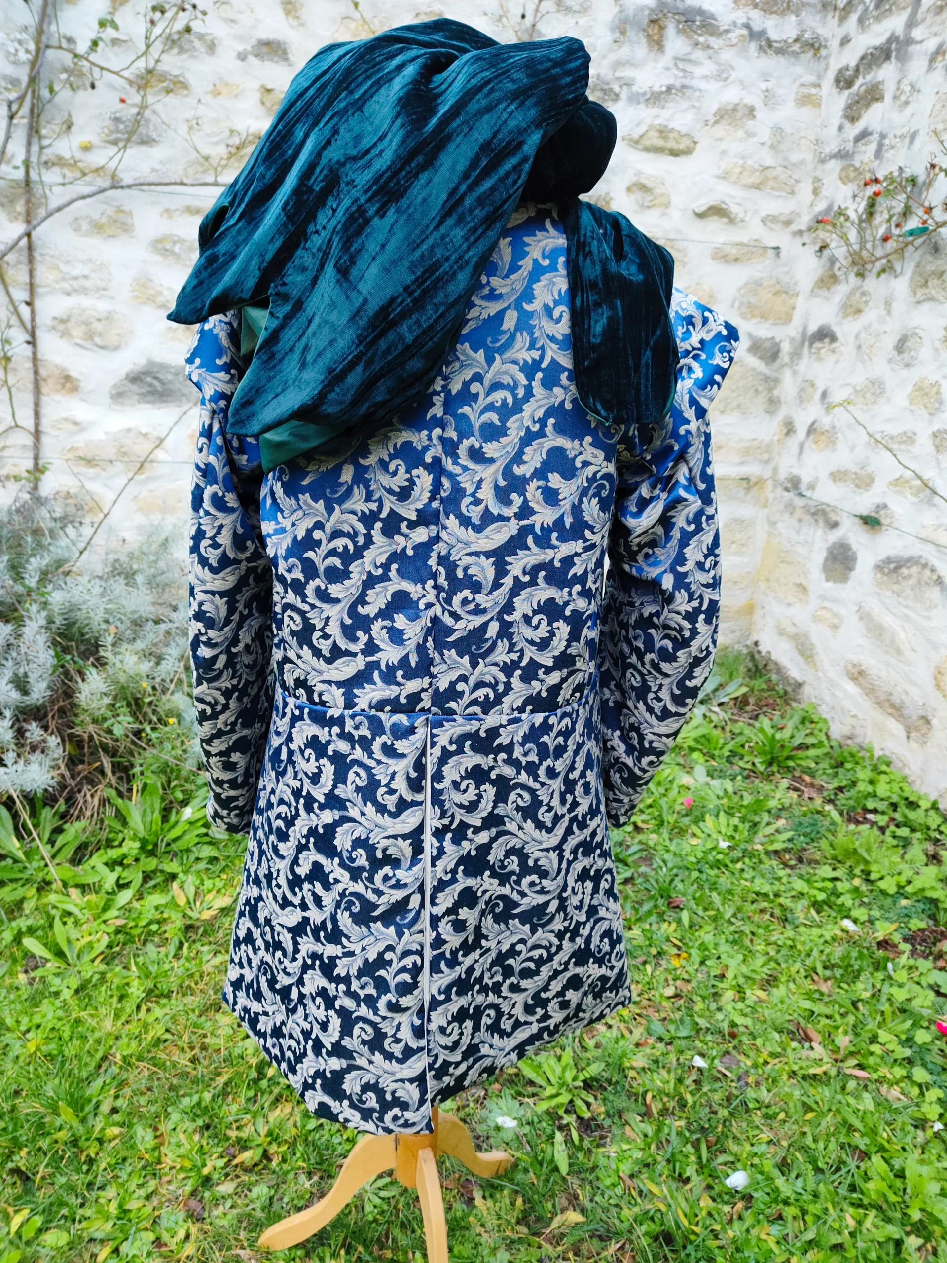 Cette Veste Renaissance en jacquard bleu séduira tous les amoureux des beaux costumes. Sa coupe à longues basques et ses manches longues apportent une touche d’élégance et de sophistication. Une pièce luxueuse et intemporelle qui fera sensation pour toutes occasions Renaissance et jusqu’au 18eme siècle suivant la façon dont vous allez l’accessoiriser.