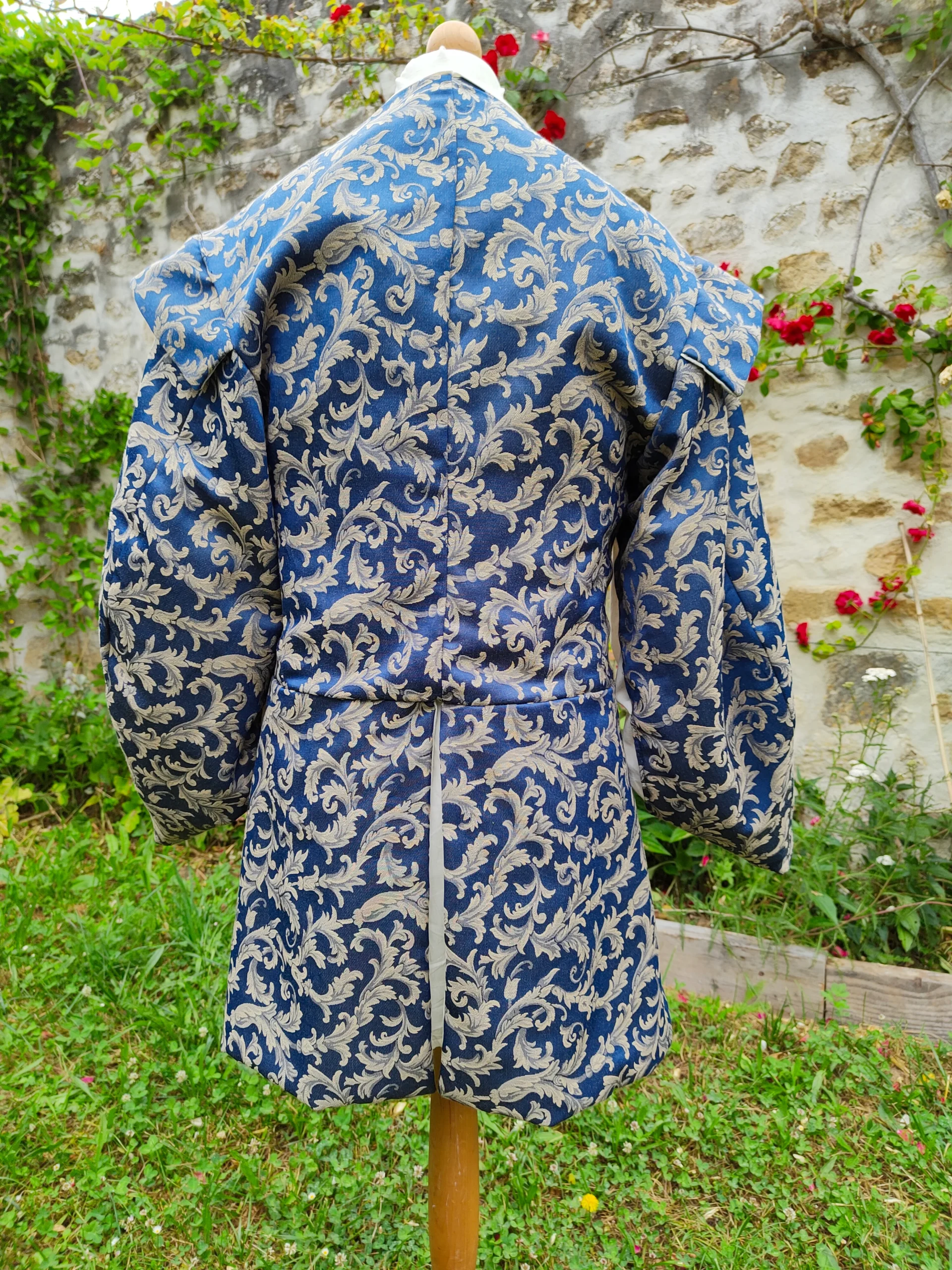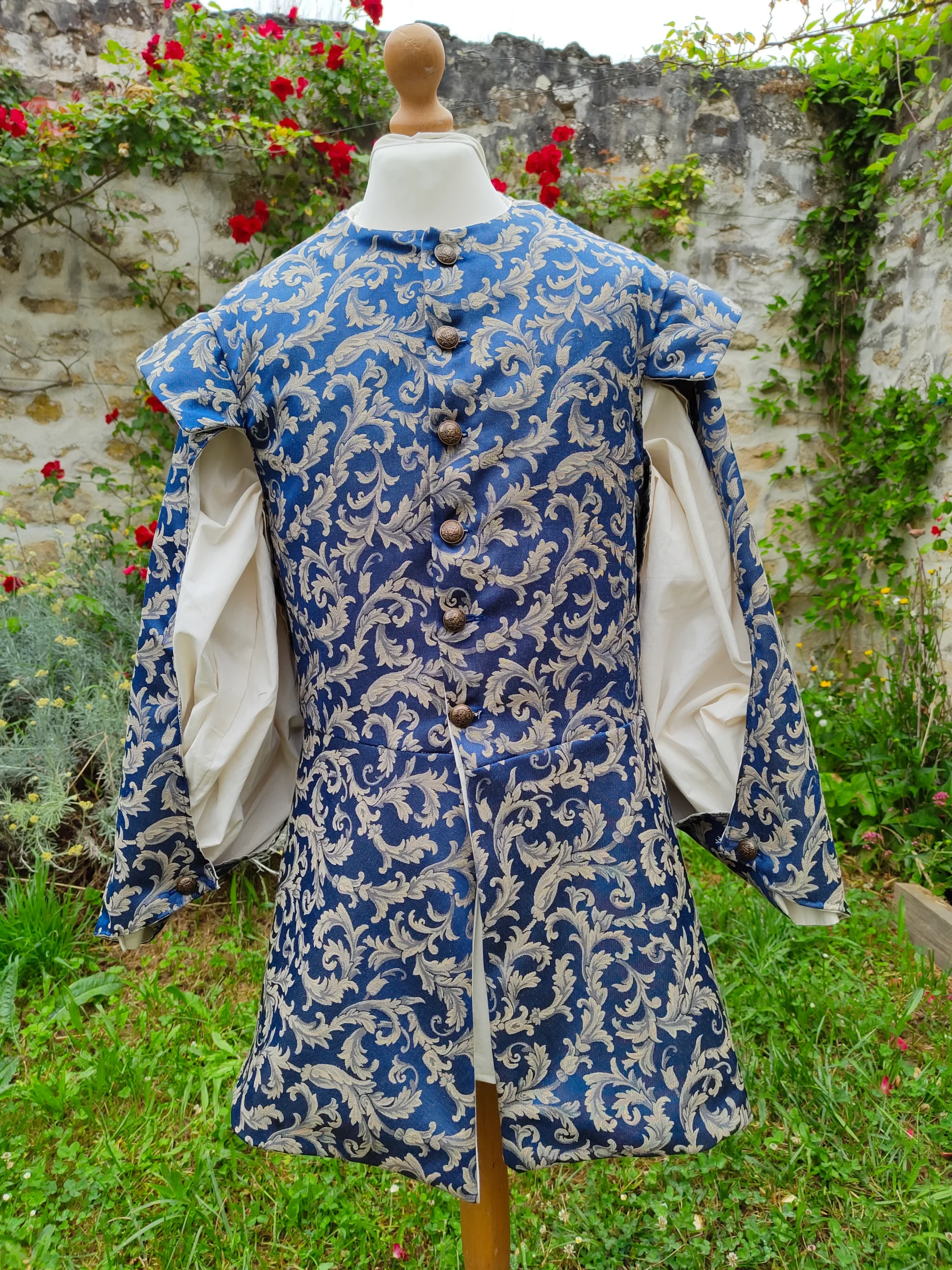 Cette veste du XV/XVIe siècle avec manches à crevées est confectionnée en jacquard bleu, pour un style élégant et historique. Les manches à crevées ajoutent une touche d’originalité à cette pièce, qui sera parfaite pour compléter votre tenue de l’époque. Ajoutez une touche d’authenticité à votre garde-robe avec cette veste unique.