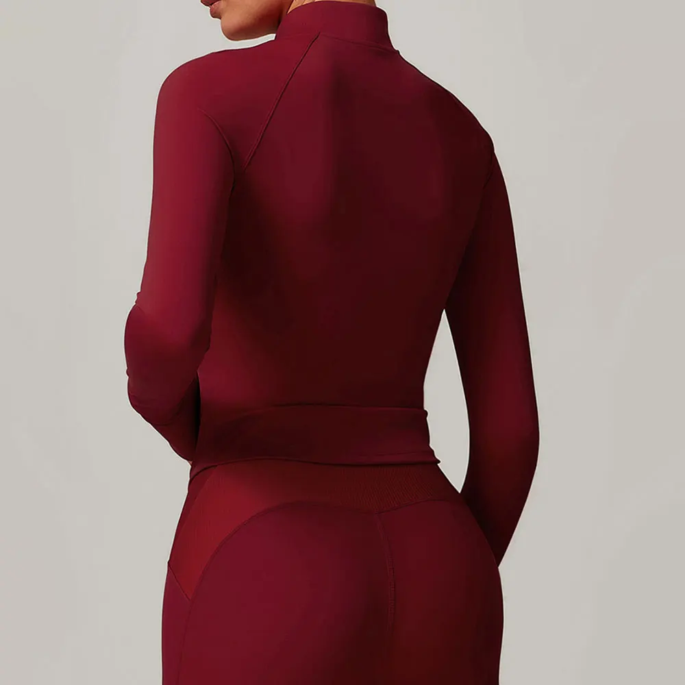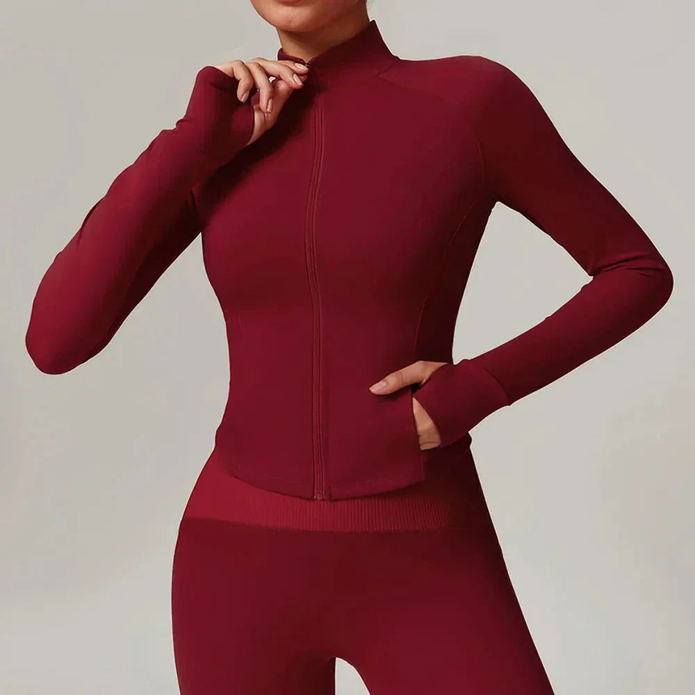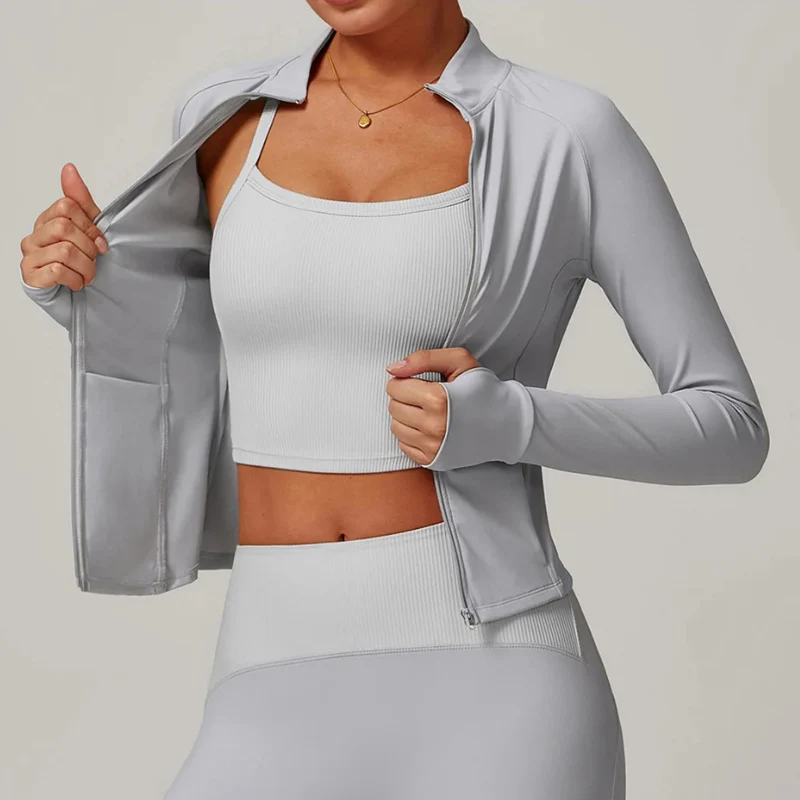 Complétez votre tenue de yoga avec cette veste élégante et fonctionnelle, idéale pour rester au chaud sans compromettre votre liberté de mouvement. Conçue dans une matière douce et respirante, elle épouse parfaitement votre silhouette avec sa coupe cintrée et son col montant, tout en vous offrant un style sophistiqué. Dotée d’un zip intégral, cette veste permet un enfilage rapide et une ventilation ajustable selon l’intensité de vos activités.