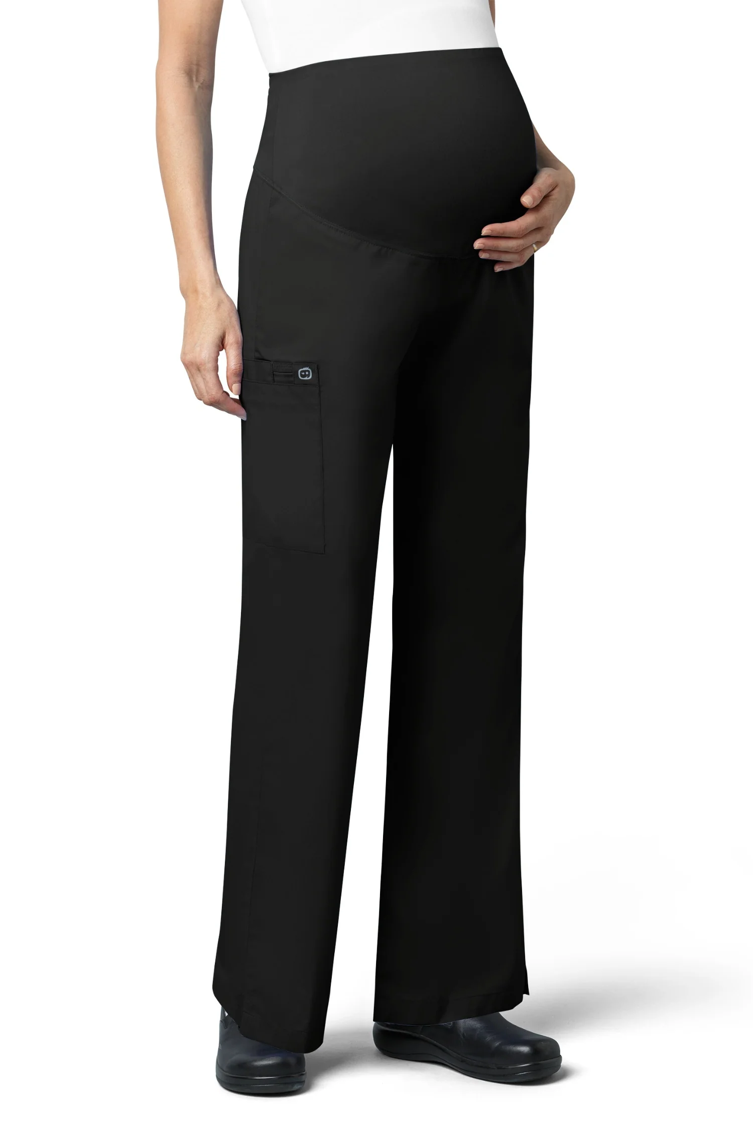 WonderWork a conçu un uniforme confortable et fonctionnel pour la grossesse. Le bas est doté d’une grande poches, d’une encoche pour stylo et d’une poche pour téléphone portable.